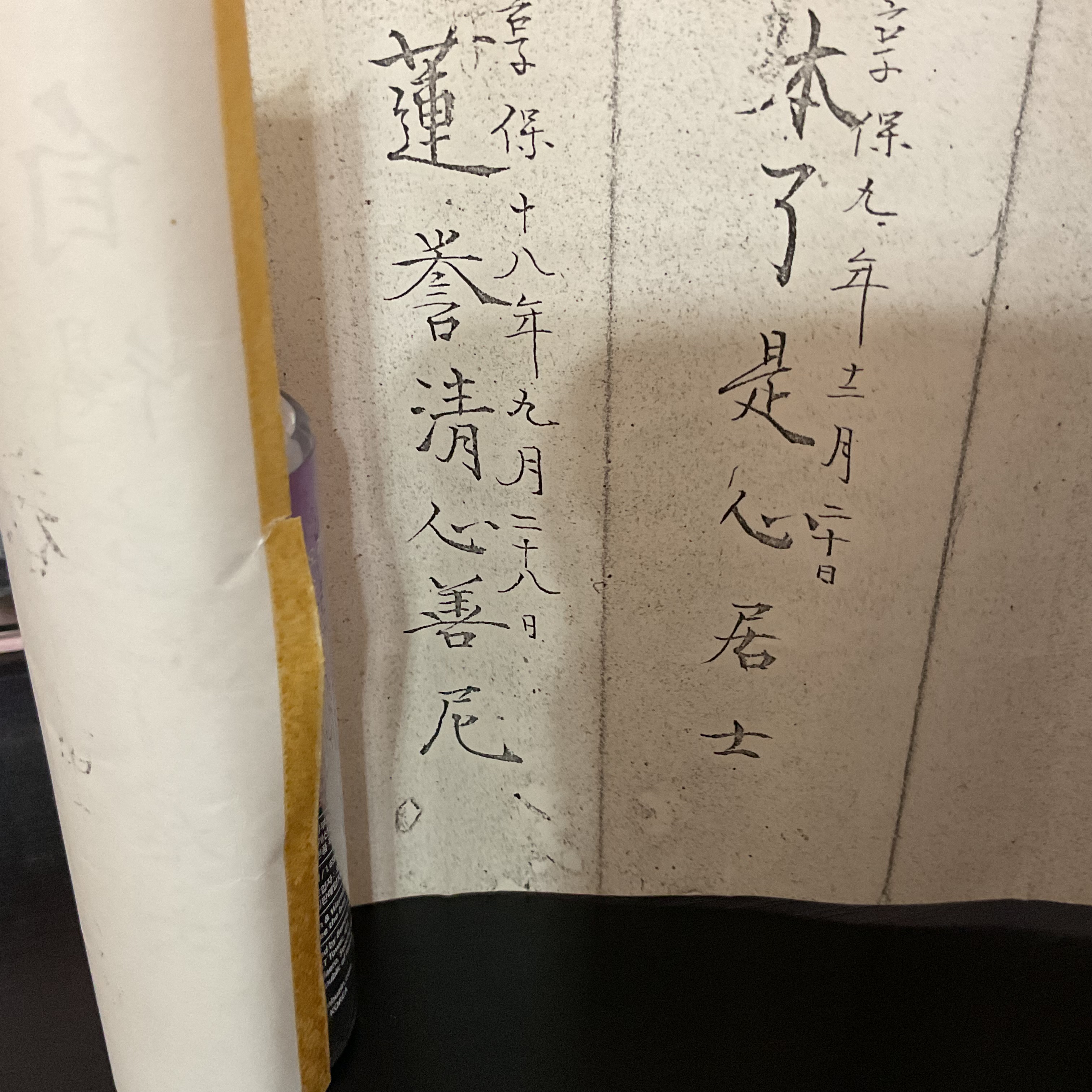 The scrolls show signs of wear consistent with age, including slight yellowing and fraying along the edges. There are no major tears or water damage, but the paper is delicate and should be handled with care to avoid further deterioration.