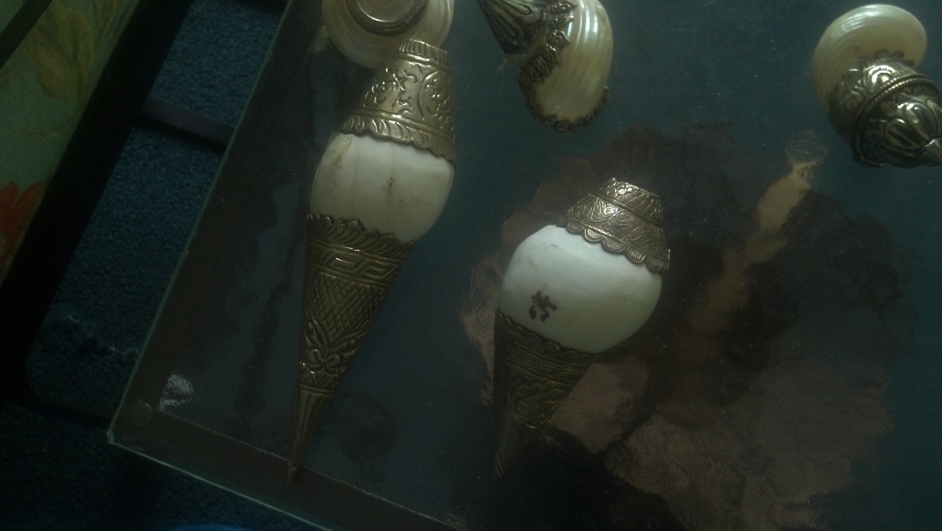 I'm not sure exactly what these are. They are made of seashell and sterling silver.