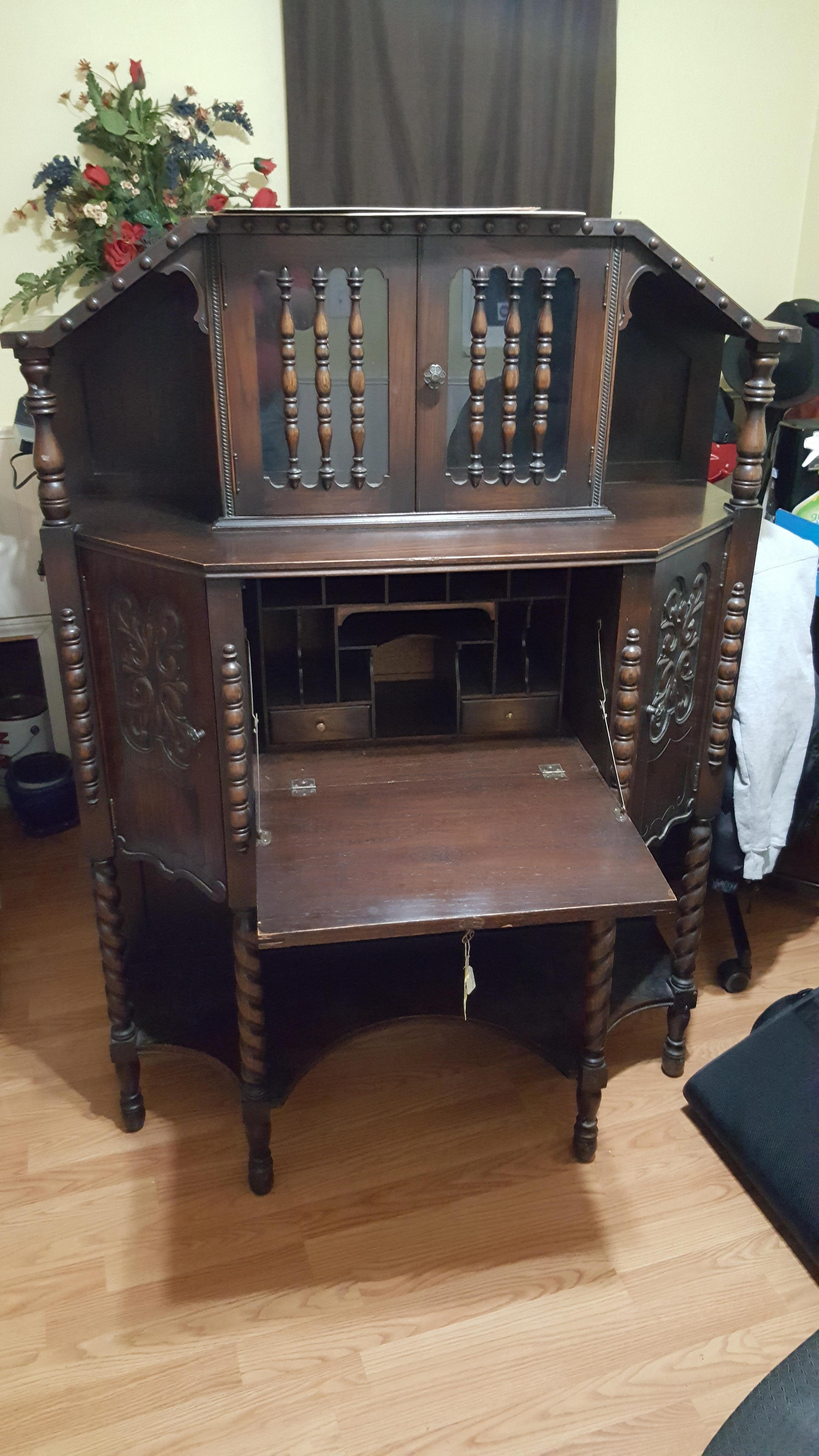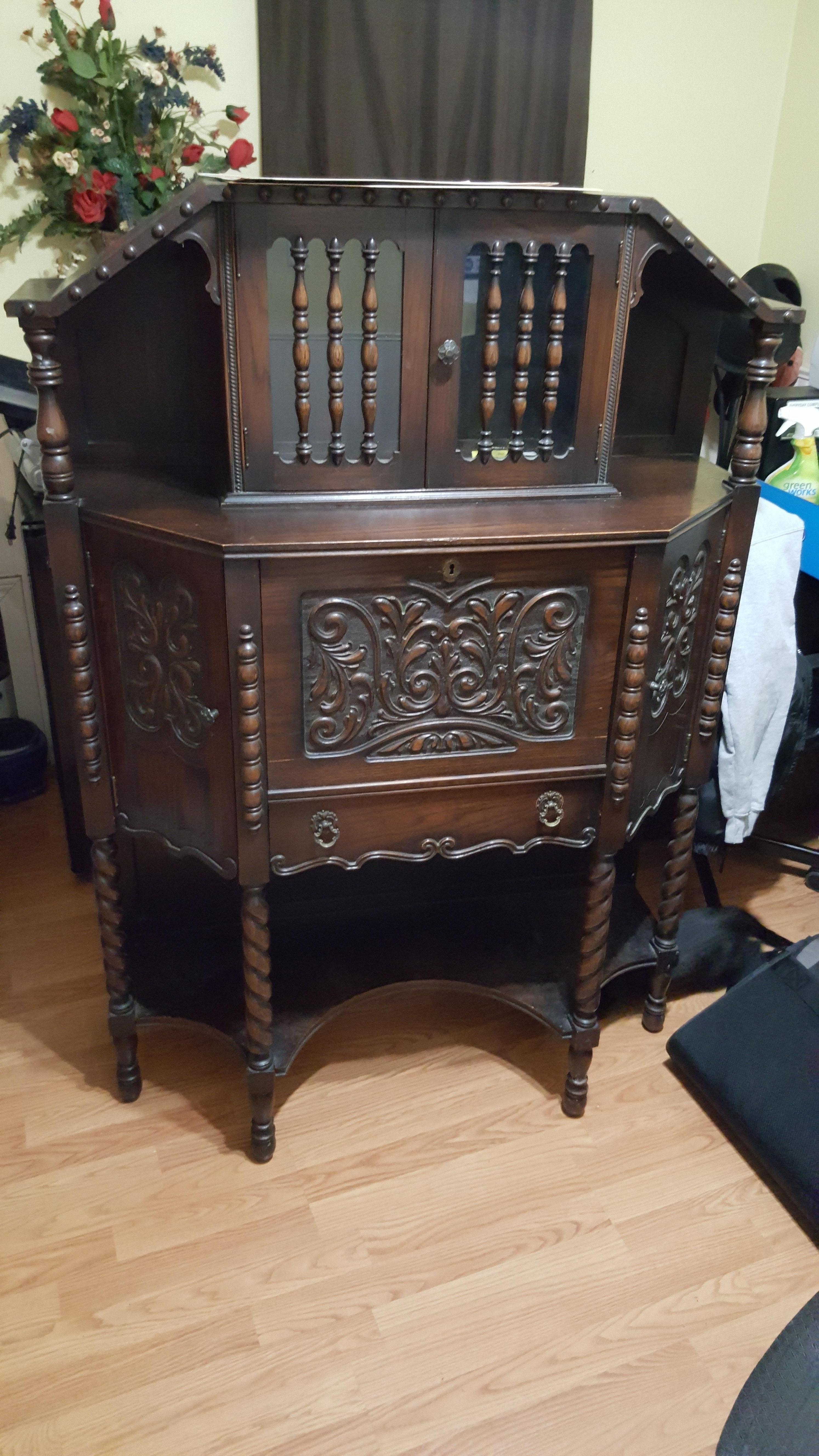 It's in the Elizabethan Revival style, most of these date from between World Wars One and Two ( 1918-1939). They go at auction these days generallyn under $200.00.