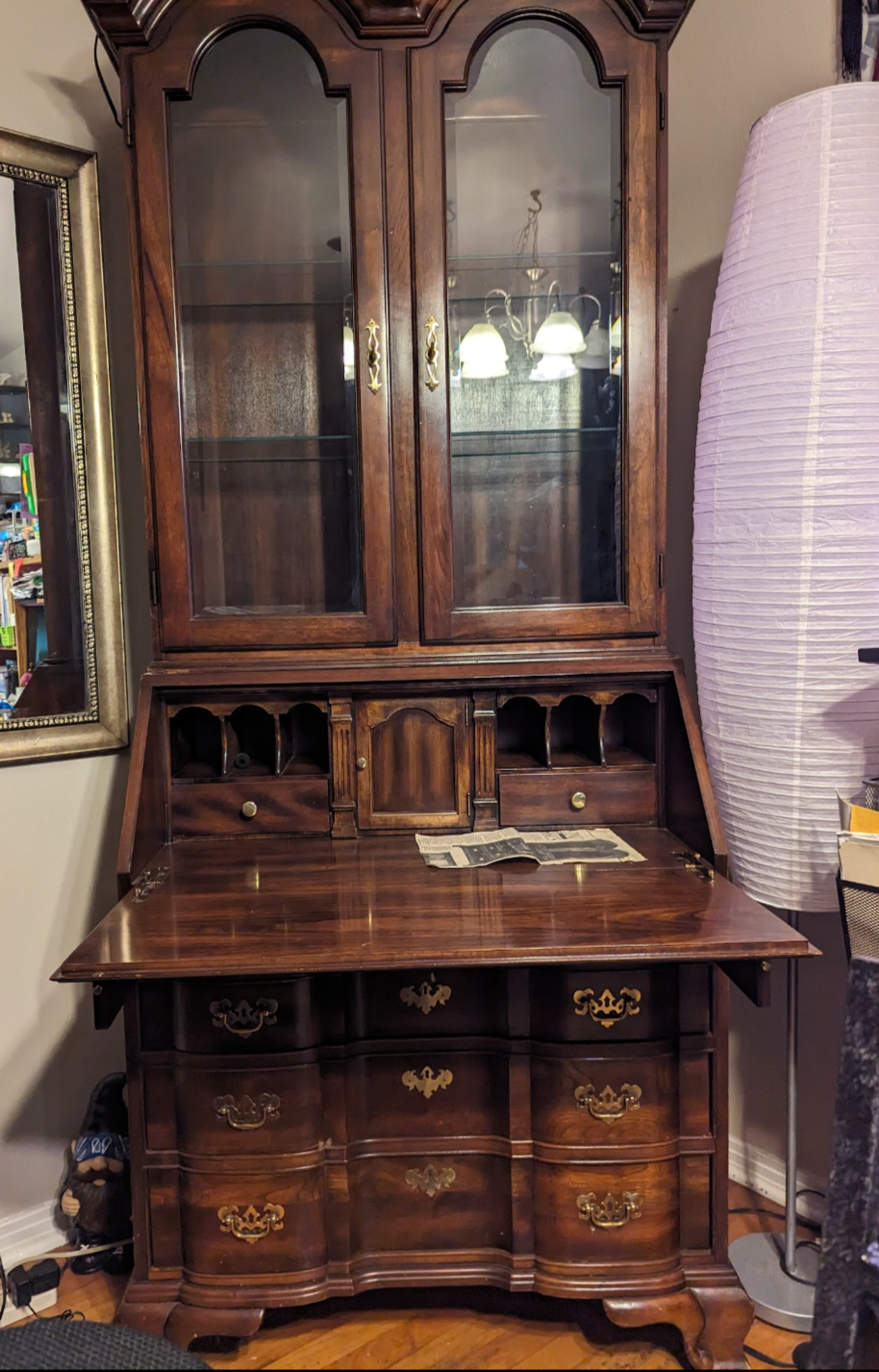 Similar vintage secretary desks with display cabinets typically range in value from $300 to $800 depending on: