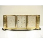 I know very little about this clock. It is a Semca 15 Jewels clock with a thermometer and berometer. In the face of the clock right above the 15 jewels stamp is a triangle with an 8 inside of it. The doors hinge open on the clock and the other two pieces. Everything works perfectly.