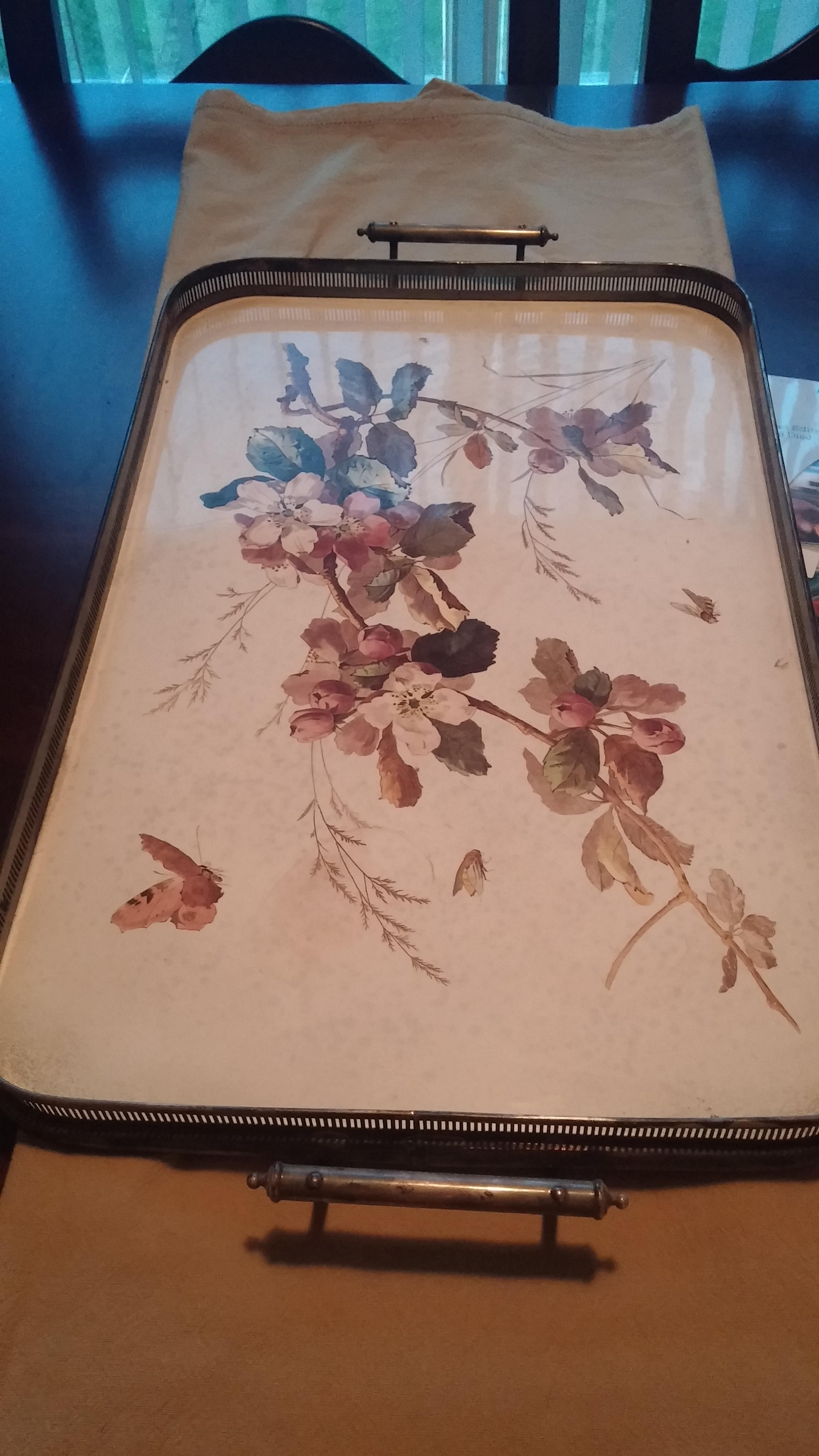 This is a serving tray with some markings on the back and the number 1798