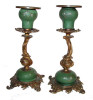 Set of 3 antique brass, marble and chrystal candle holders and serving bowl?