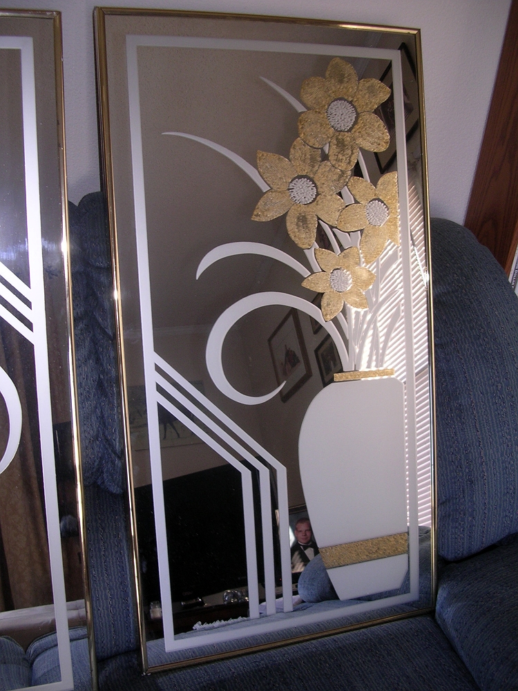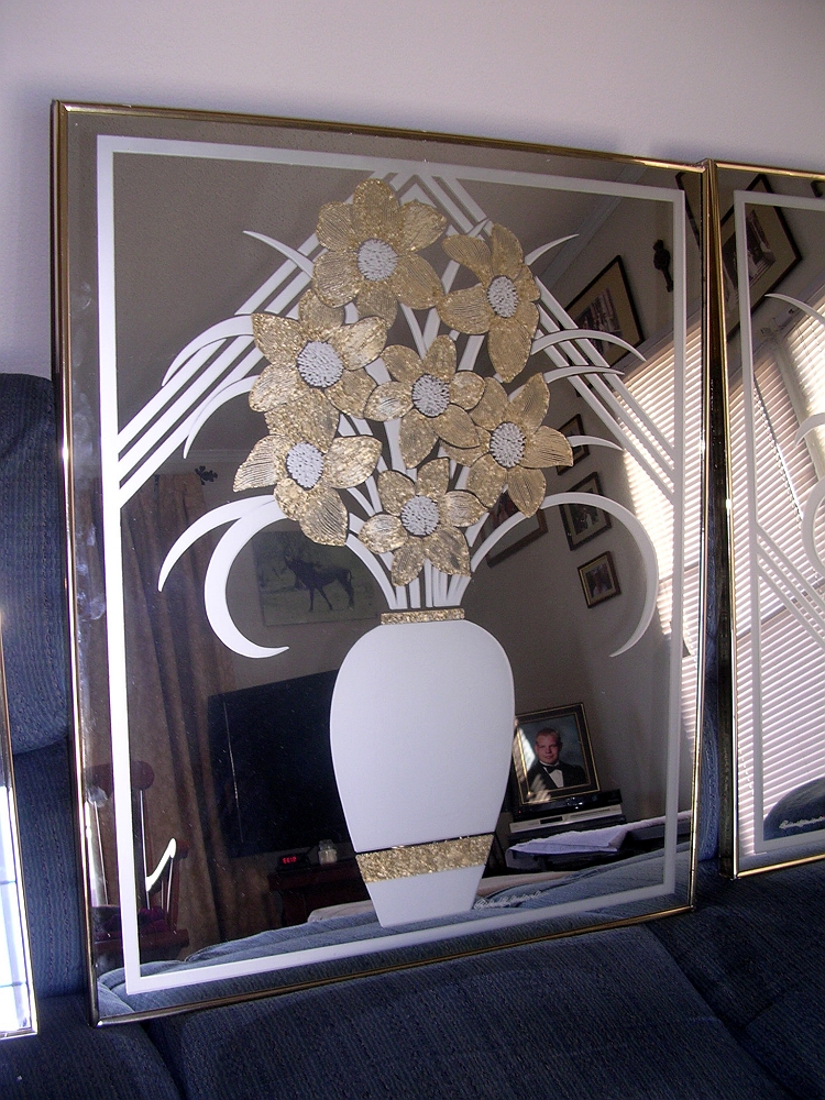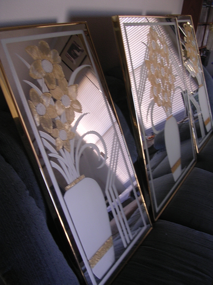 I bought these at an estate sale but can't find any informatiojn about them or the company. The center mirror measures 28.5 ' x 34.5". The two side panels measure 18" x 34.5" each. Does anybody know who's signature is at the bottom of each mirror, how old they are or what the value is please?
