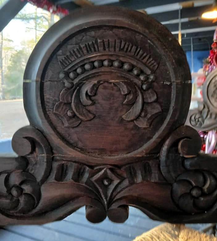This set of 4 hand-carved wooden chairs is a beautiful example of European craftsmanship, likely French or Spanish Provincial from the late 19th to early 20th century. The crown carving and initials may provide further clues about its origin and maker, making authentication valuable.