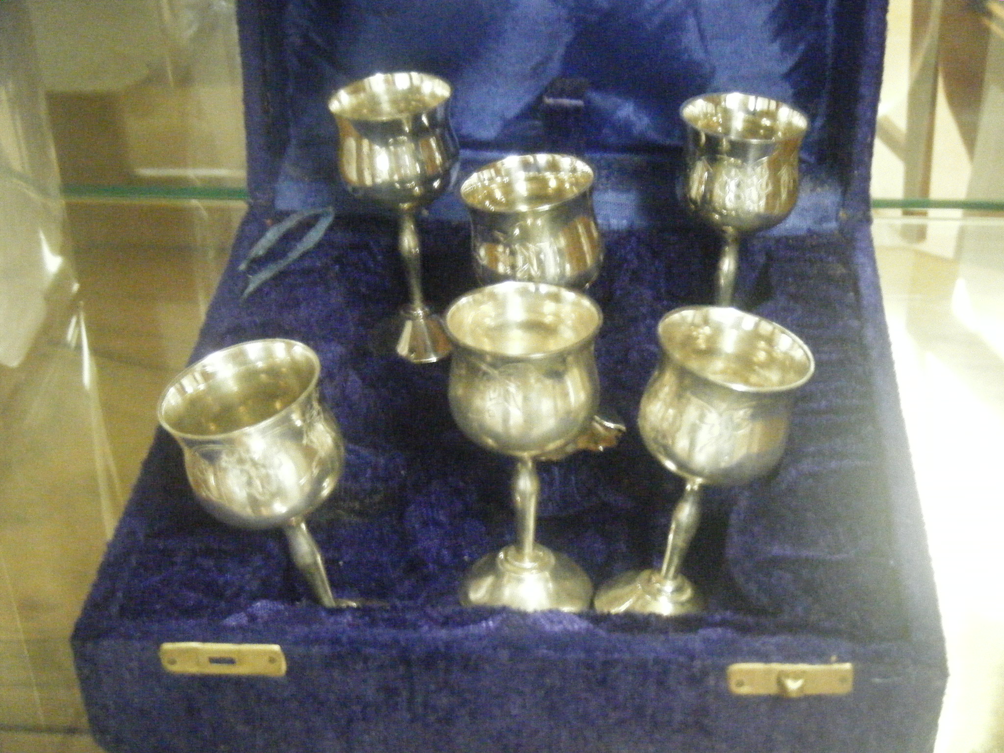 set of 6 silver port goblets made in India hall marked SC on the bottom stored in a blue velvet case