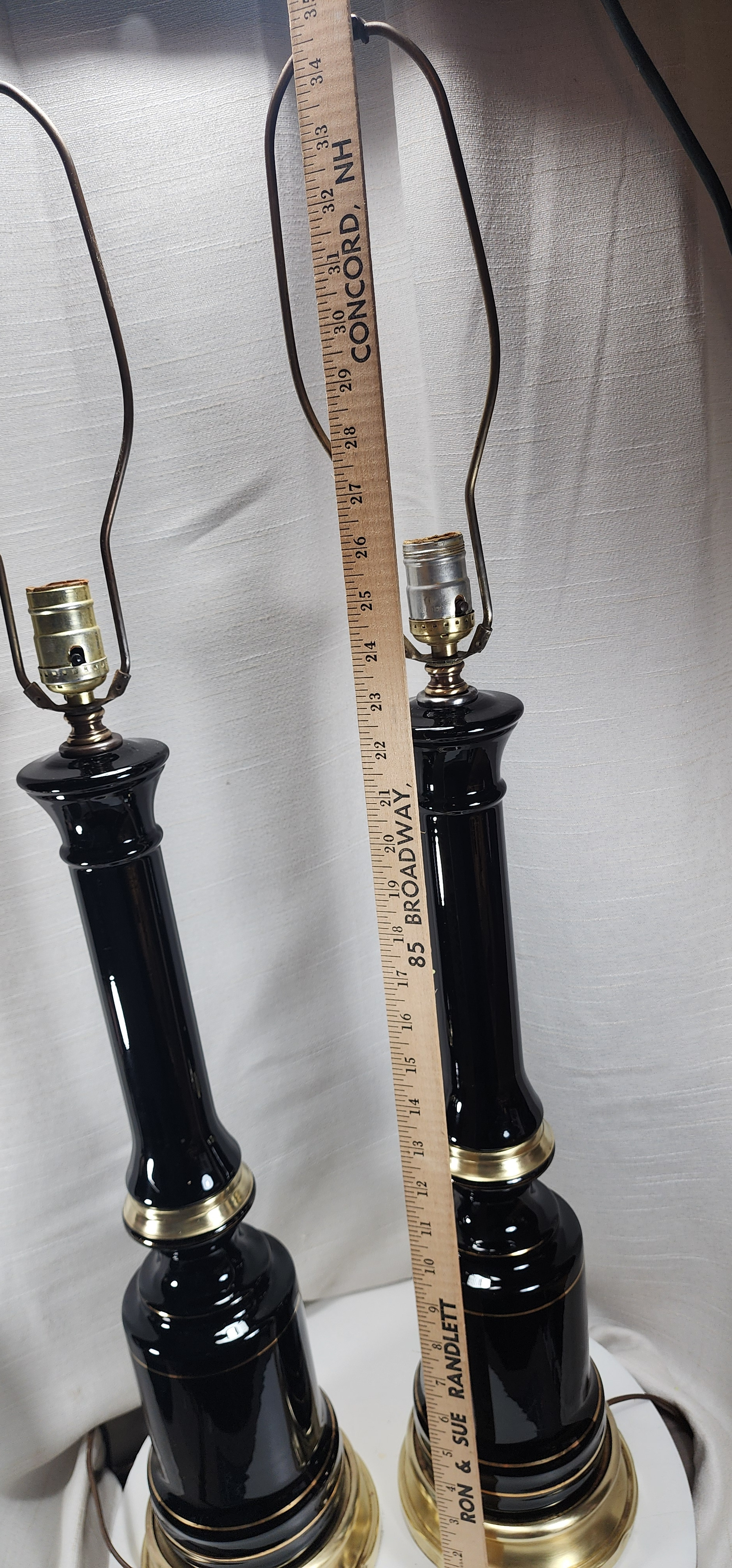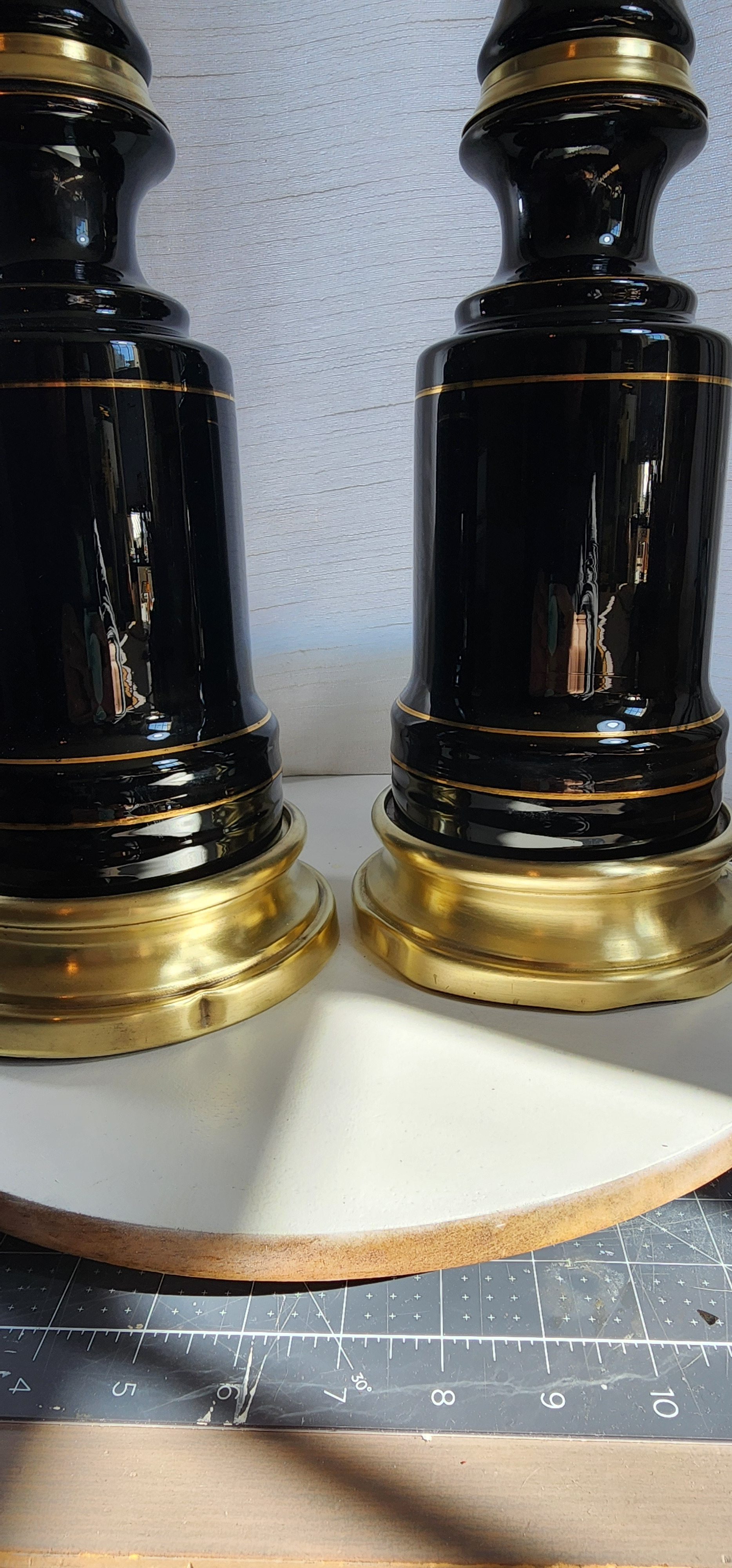 What Is Set of Black Glass and Brass Hollywood Stiffel Style Table Lamps with no Markings Worth?