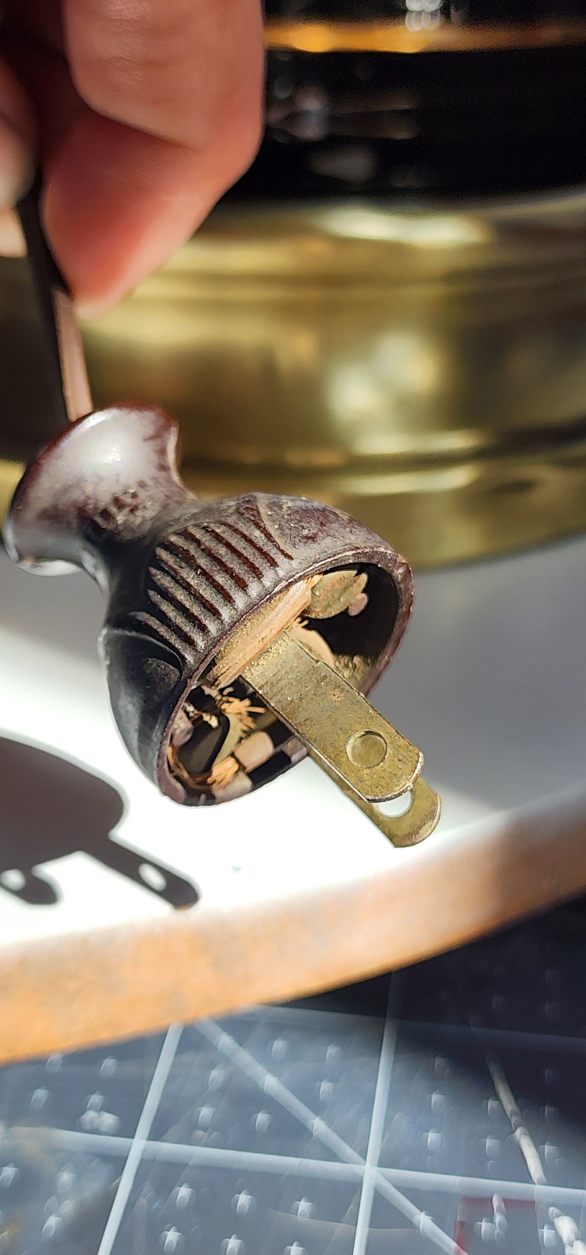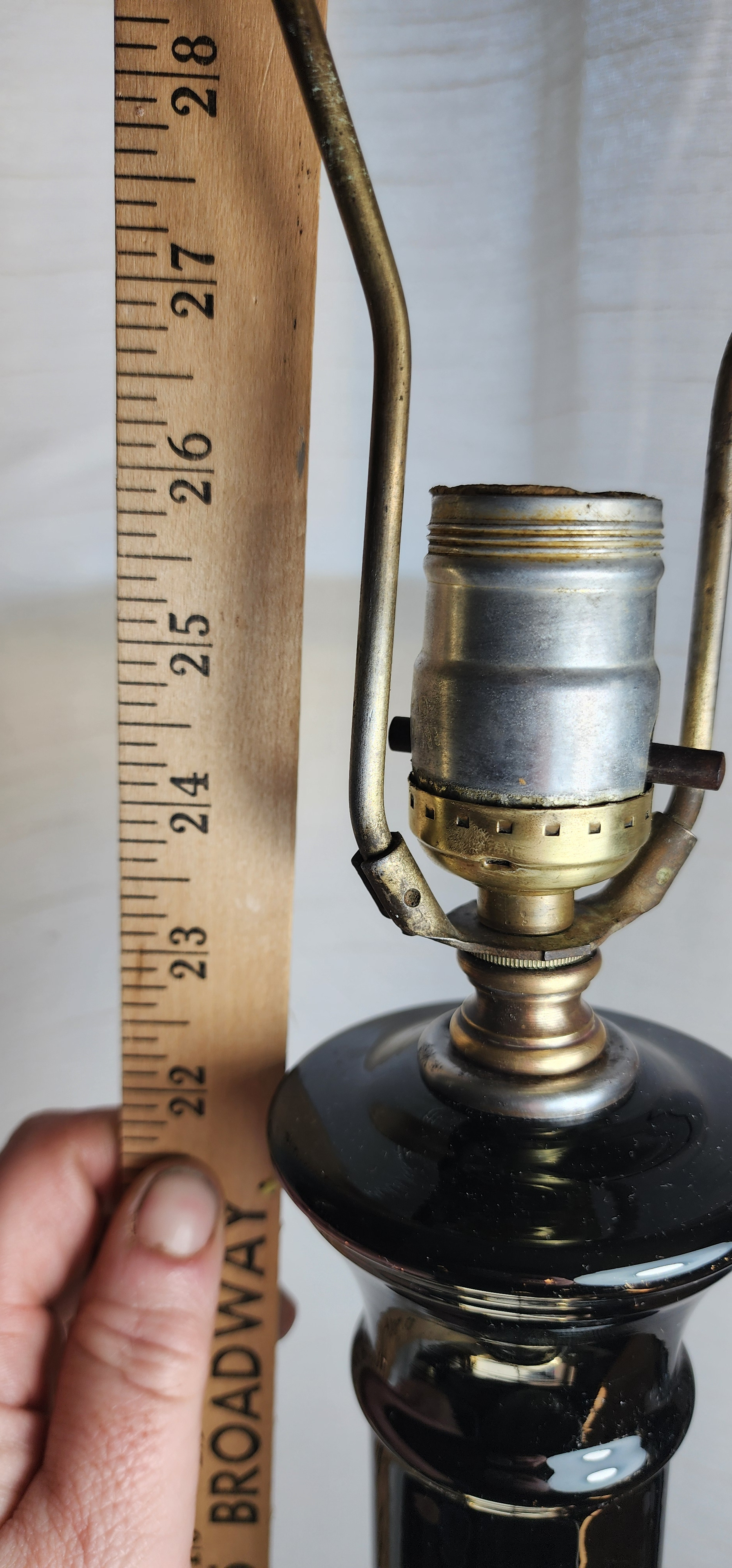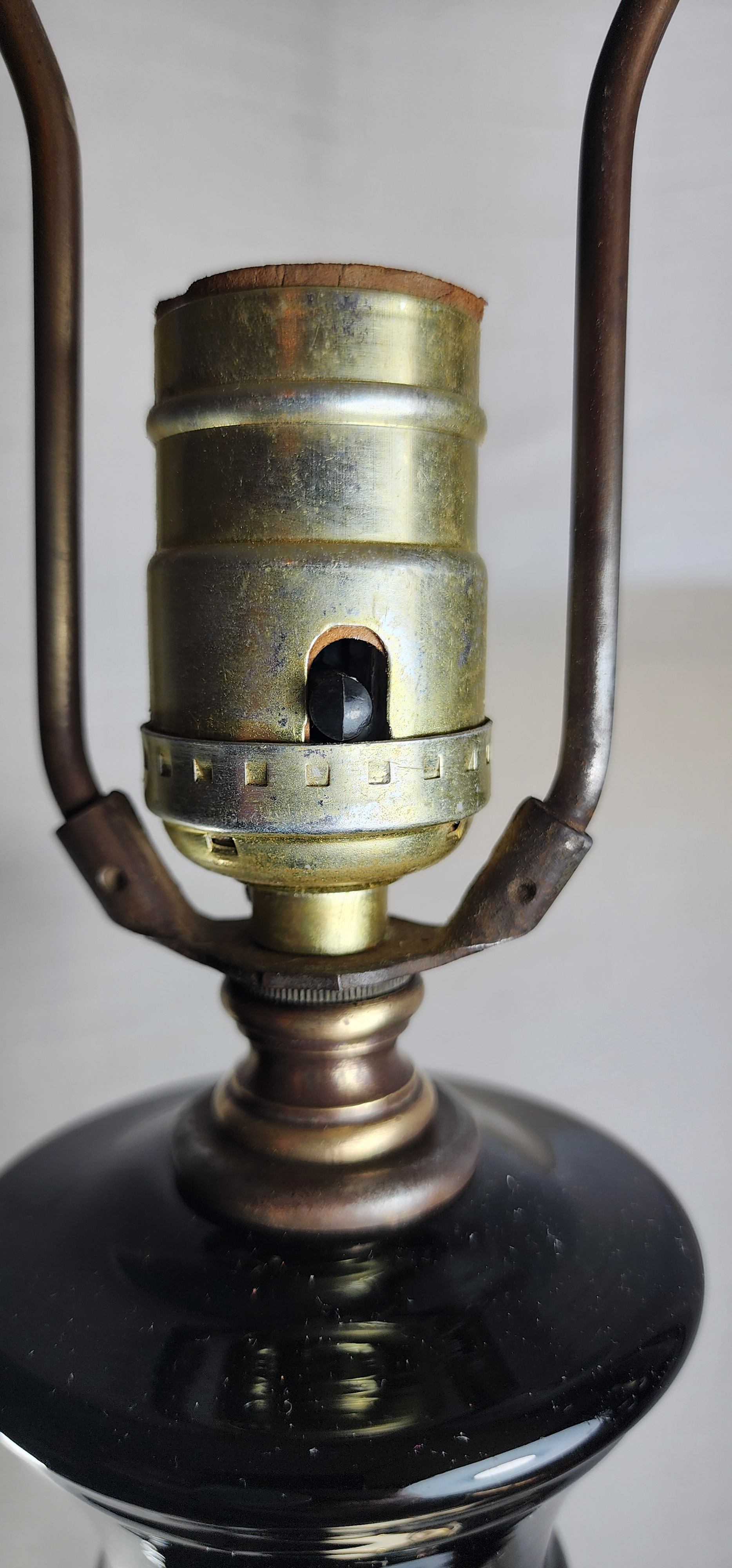 I took them apart to clean and couldn't find any markings. The bases have a few dents. There is what it looks like to be a scratch on the glass (see last pic) otherwise great condition. I haven't plugged it in to verify it works, I am worried about the age of the plug but they did have new bulbs when I purchased them so I assume it works.
