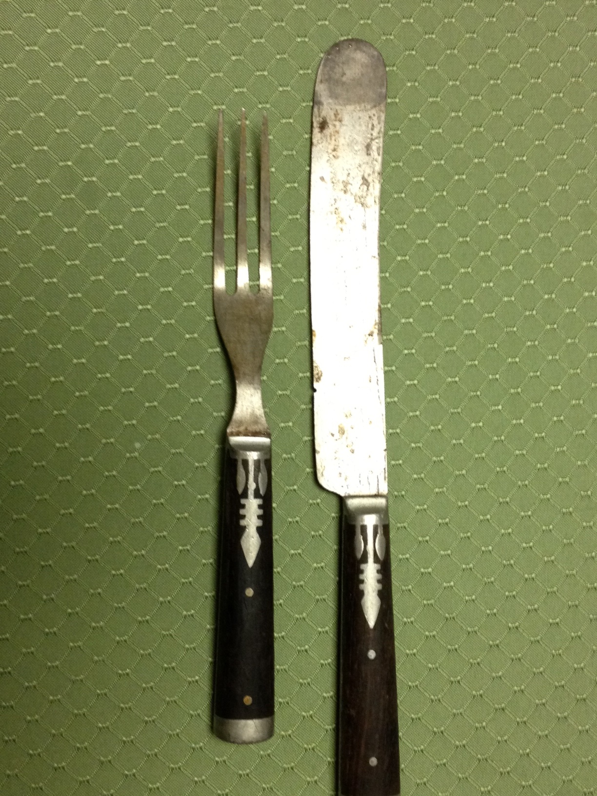 I have a set of 5 knives and forks from the "Goodell Company". There is pitting on the knife blades but you can see the Goodell Company markings on 4 of the 5 knives. I've been having difficulty locating information on old Goodell flatware and hope that someone can help with dating these pieces.