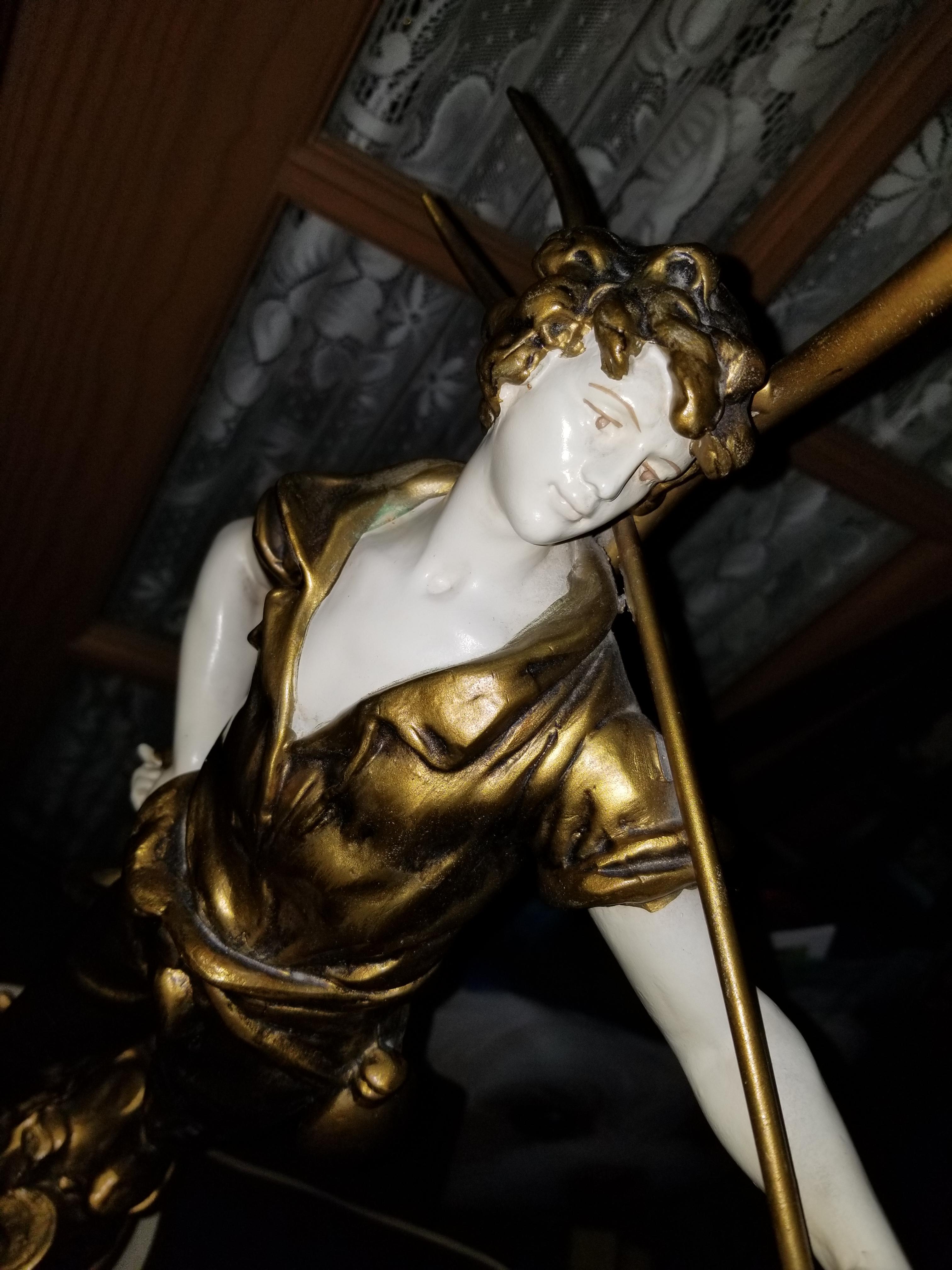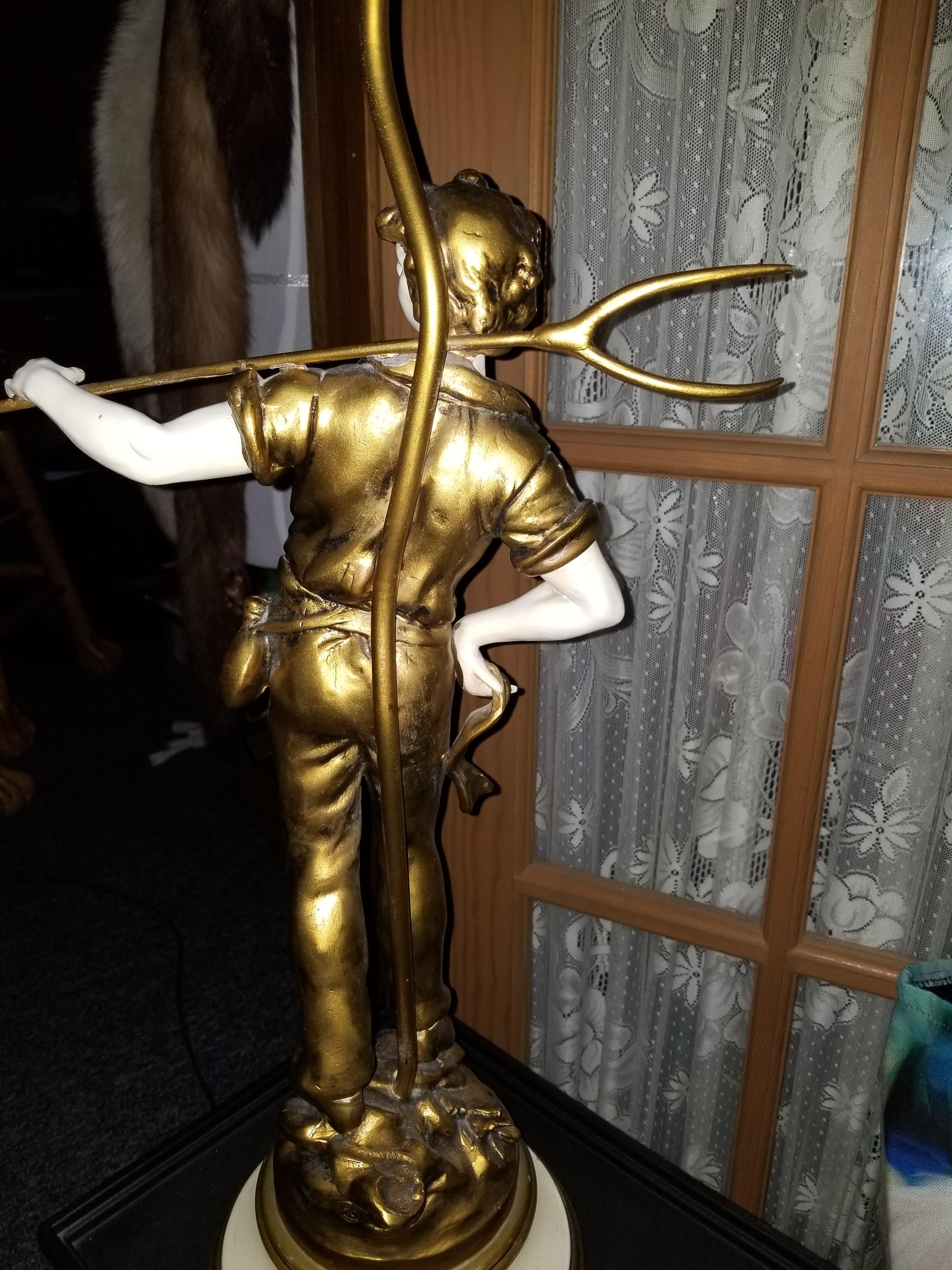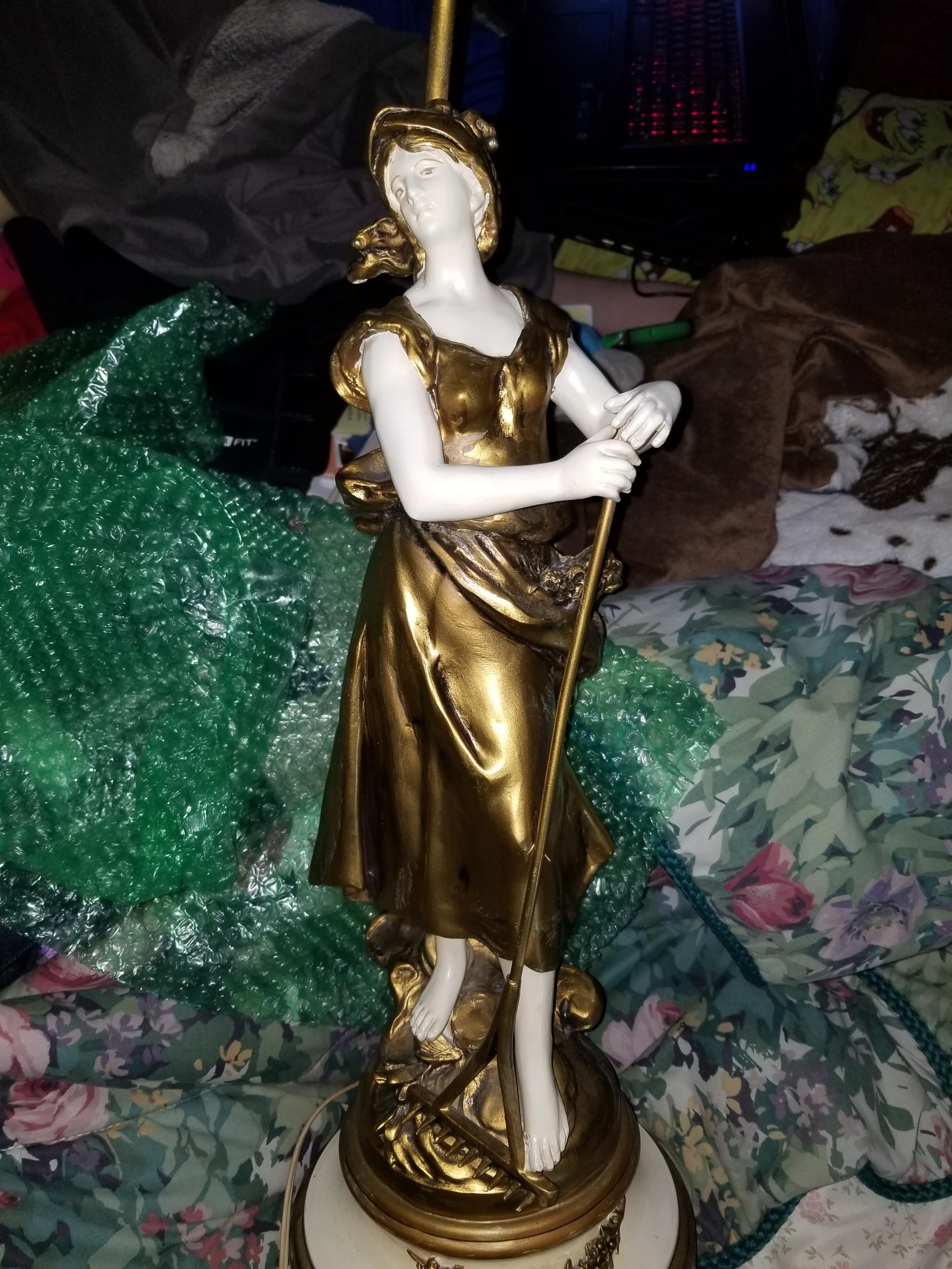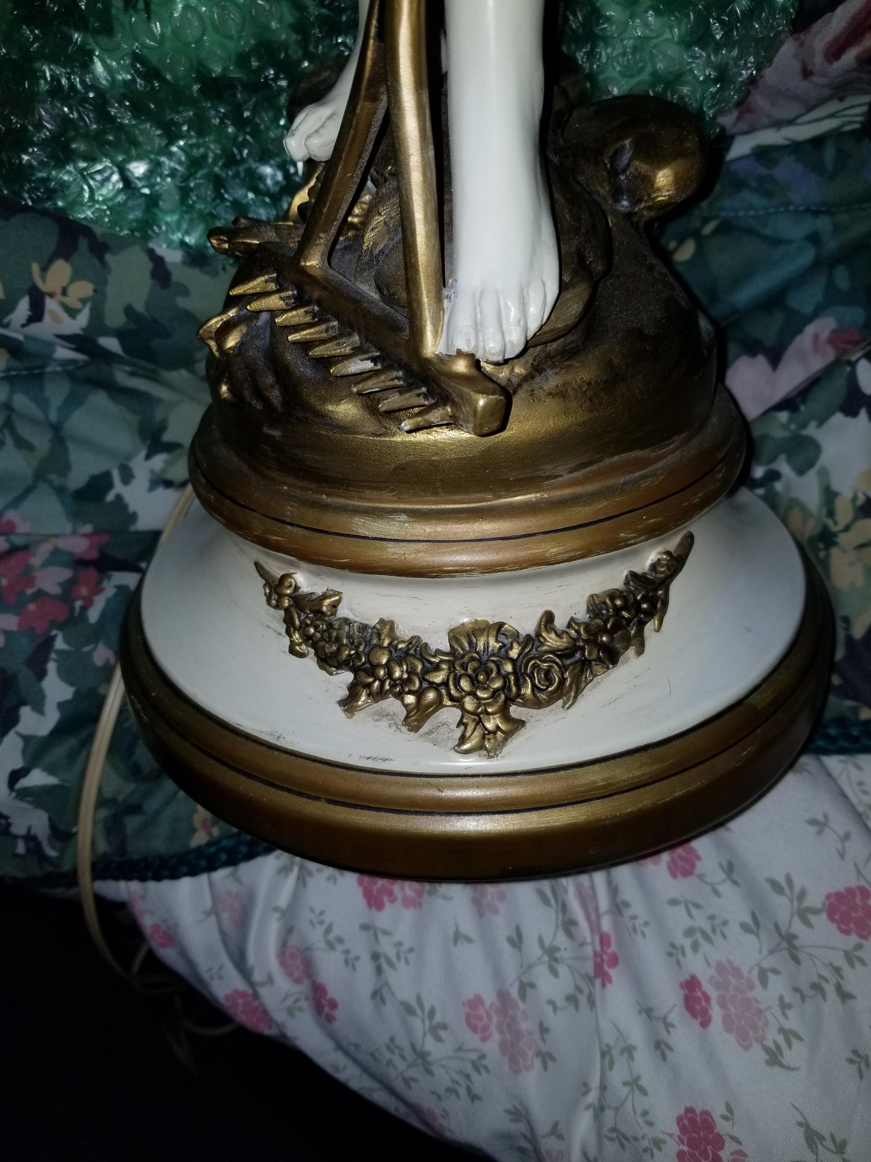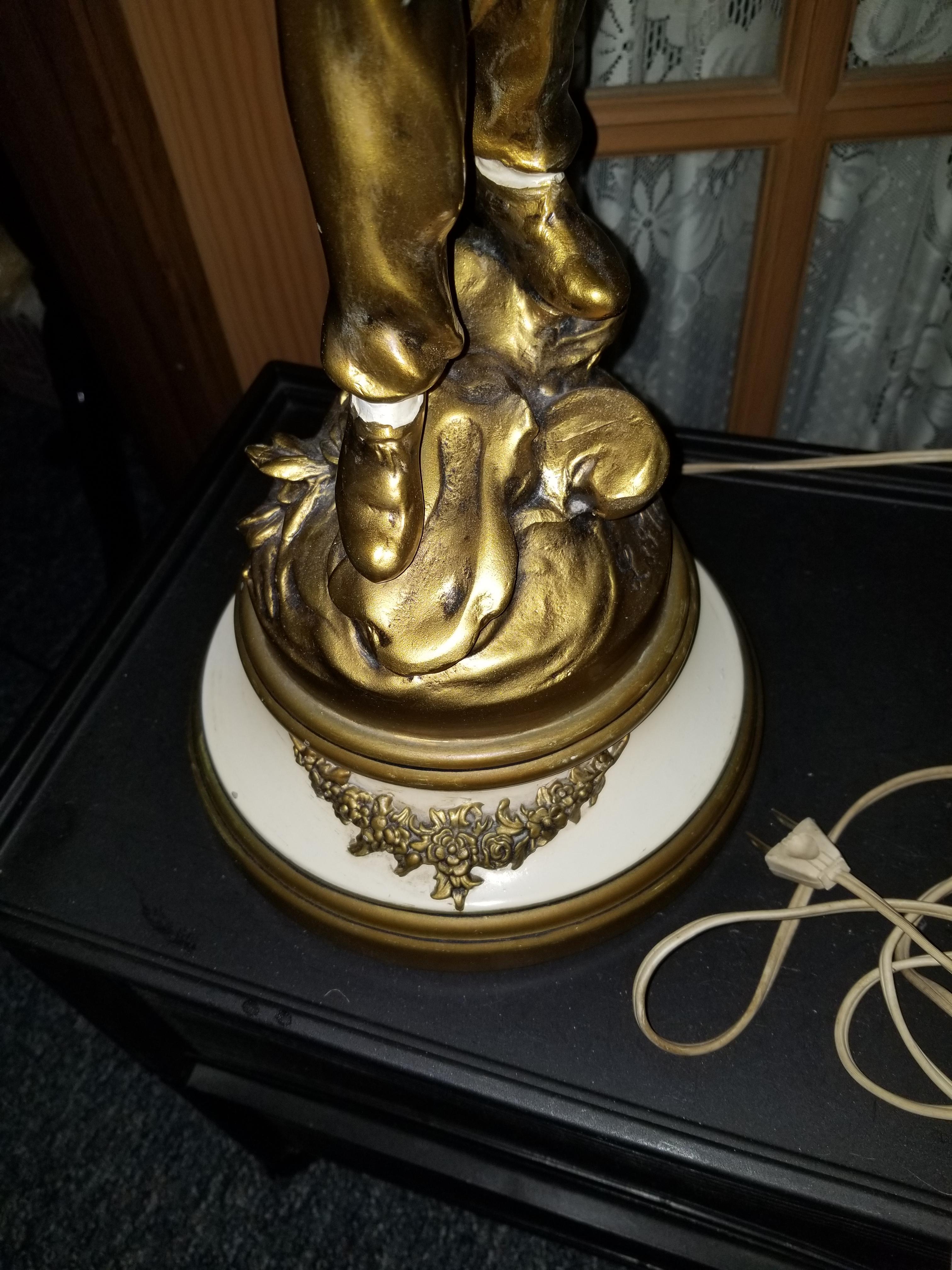 They are in perfect condition and were used on bedside tables as lighting. Both have shades. They feel like metal to me.
