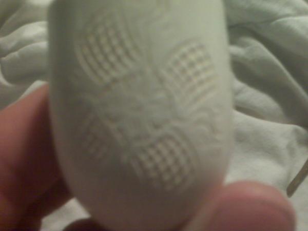 The short pipe is also white ivory and has flowers etched all the way around the bowl. The mouthpiece is a type of yellow plastic.