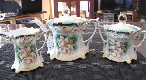 I have a set of RS Prussia porcelain. not sure if it is a tea pot or a chocolate pot with creamer and sugar bowl. It comes from my husband grandmother who probably got it at the turn of the 20th century as a wedding present. I'm look for an estimated value. I live in Canada.