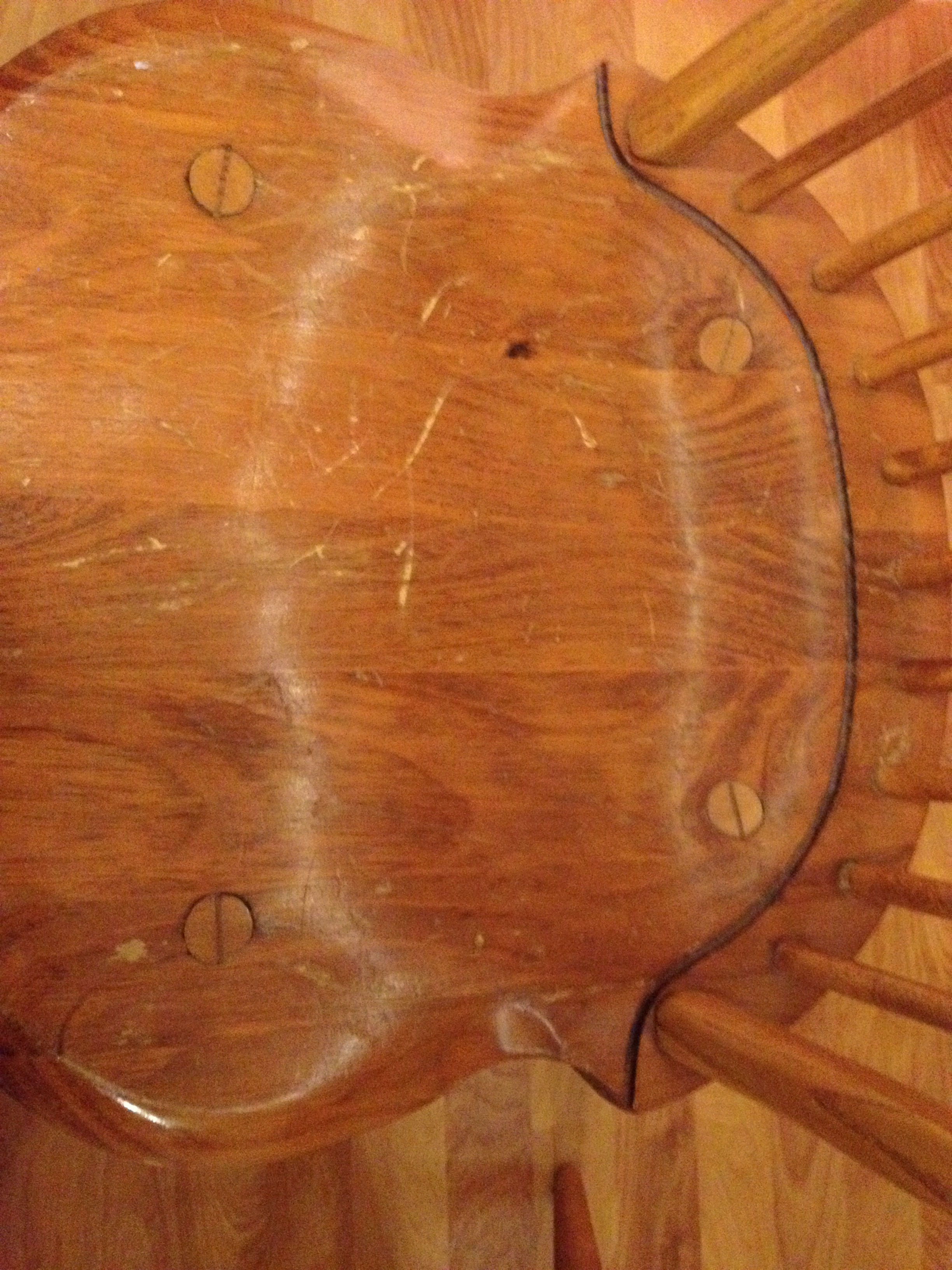Set of two tall Windsor style back chairs. Wooden pegs. Chair bottoms are sculpted.