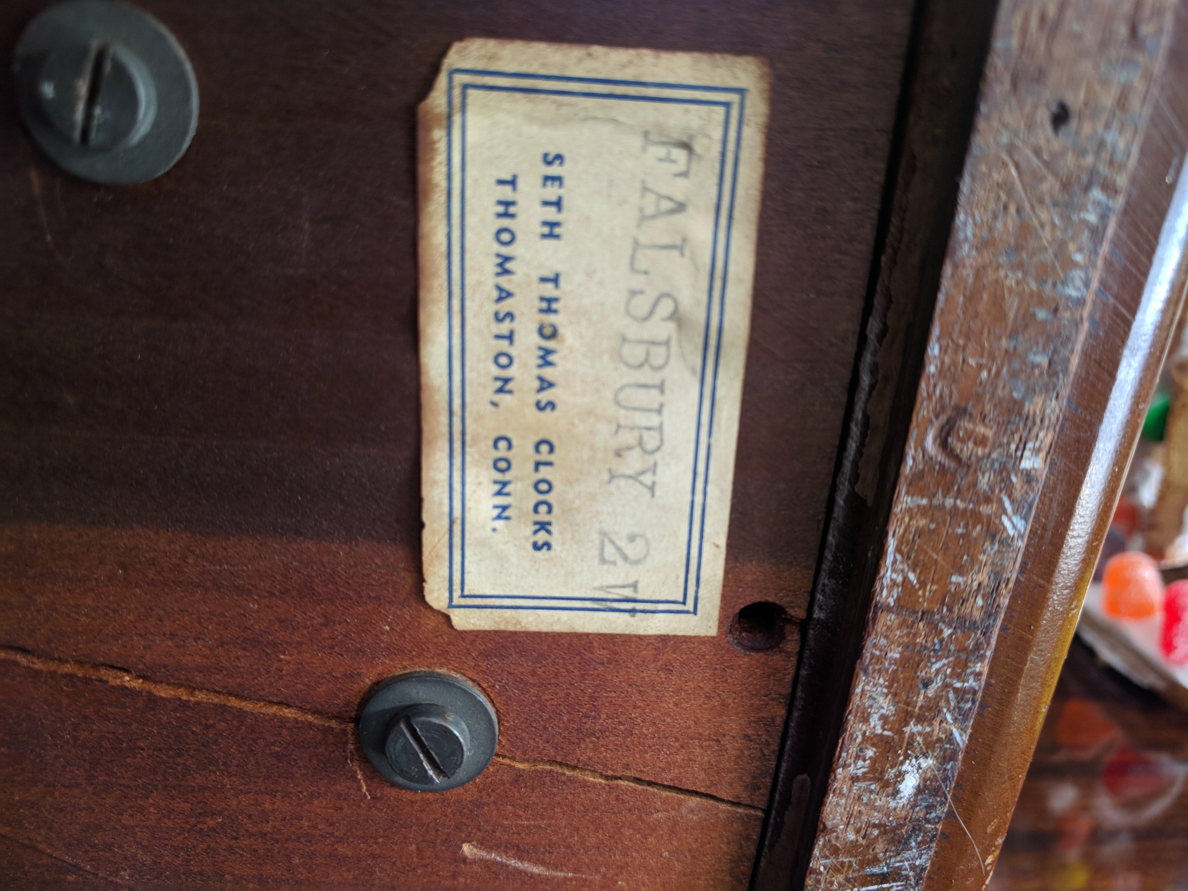 Wooden Seth Thoms Mantle clock. Clock is in great condition, however I do not have the key for winding and the face glass is mssing/broken.