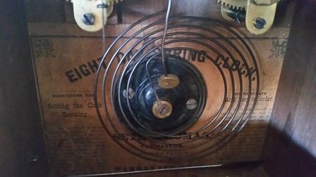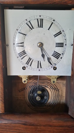 8 Day movement strikes on the hour, rosewood case. reverse painting on door, circa 1875. With Key.