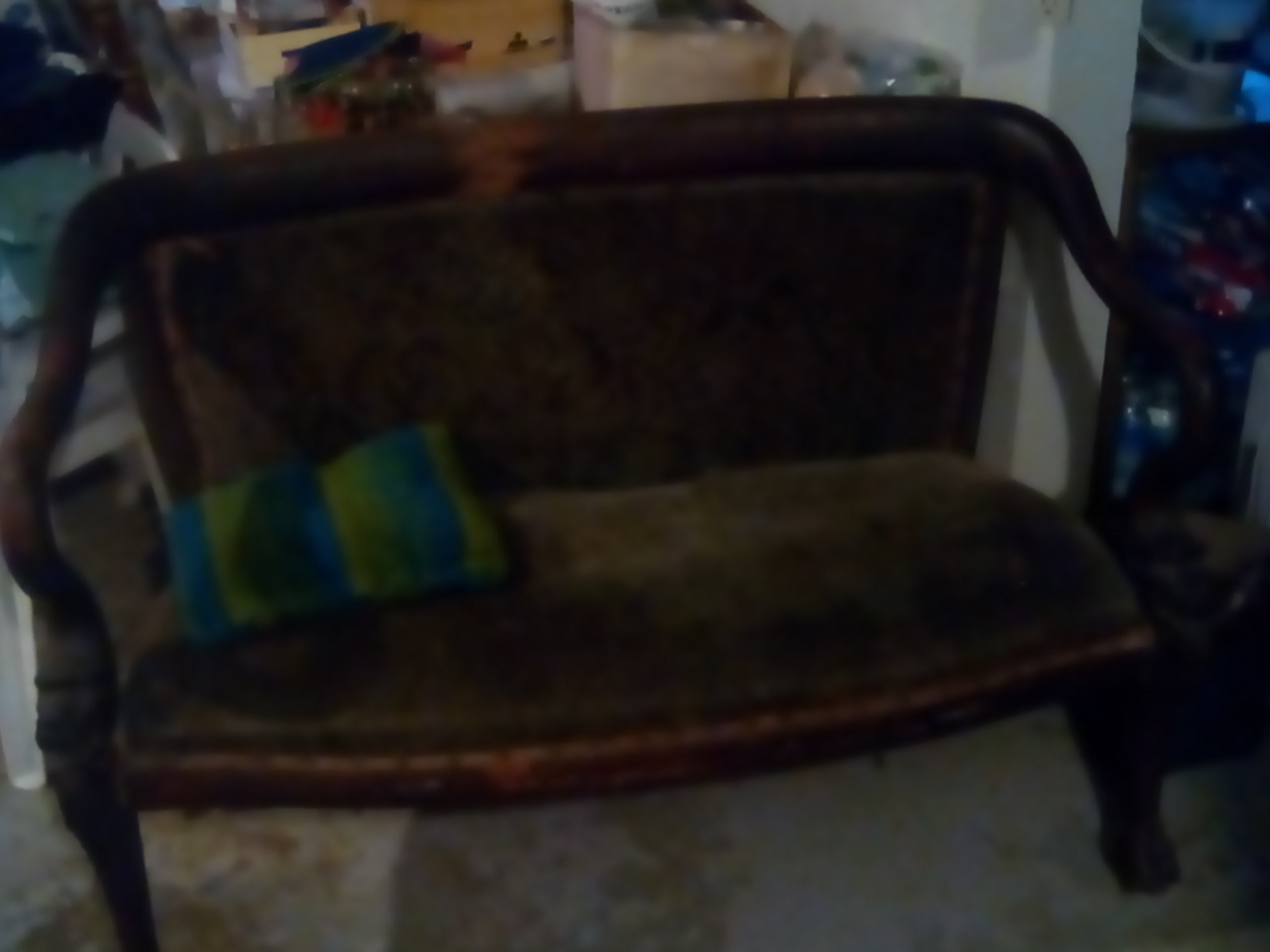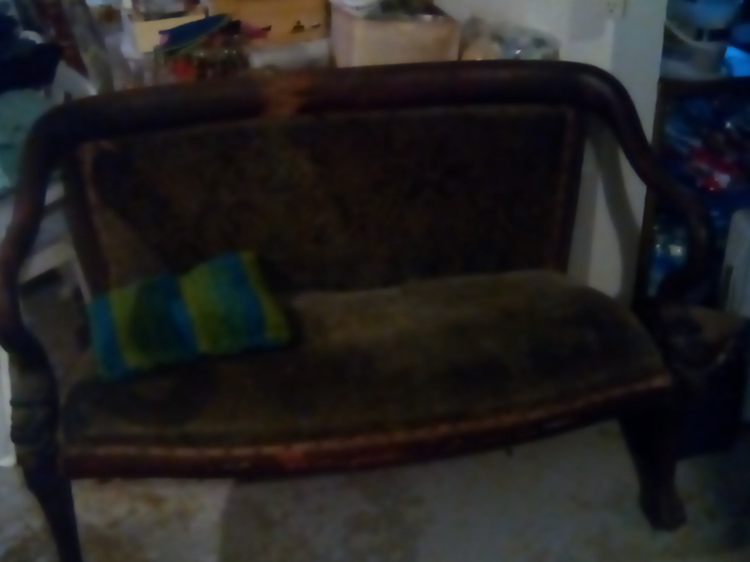 My Grandmother has had this Settee in her basement for years, the other day she asked me to sell it for her. I've looked over countless images in the hopes of finding one that was similar to identify the maker of this piece. I've had no luck. I've found other Settee's in the same style as this one of course, what makes this one stand out from the rest are the Dragon Heads. It still has the origial caster wheels, which i hear is a plus. Grandma says that it suffered a flood at one time, and she had always wanted to have it restored but just never found the time. I've looked all over this sofa trying to find a makers mark, and I can't seem to spot anything. I hope the pictures are good enough, I didn't have a flash. Thank you for your time and looking, any help is greatly appreciated.
