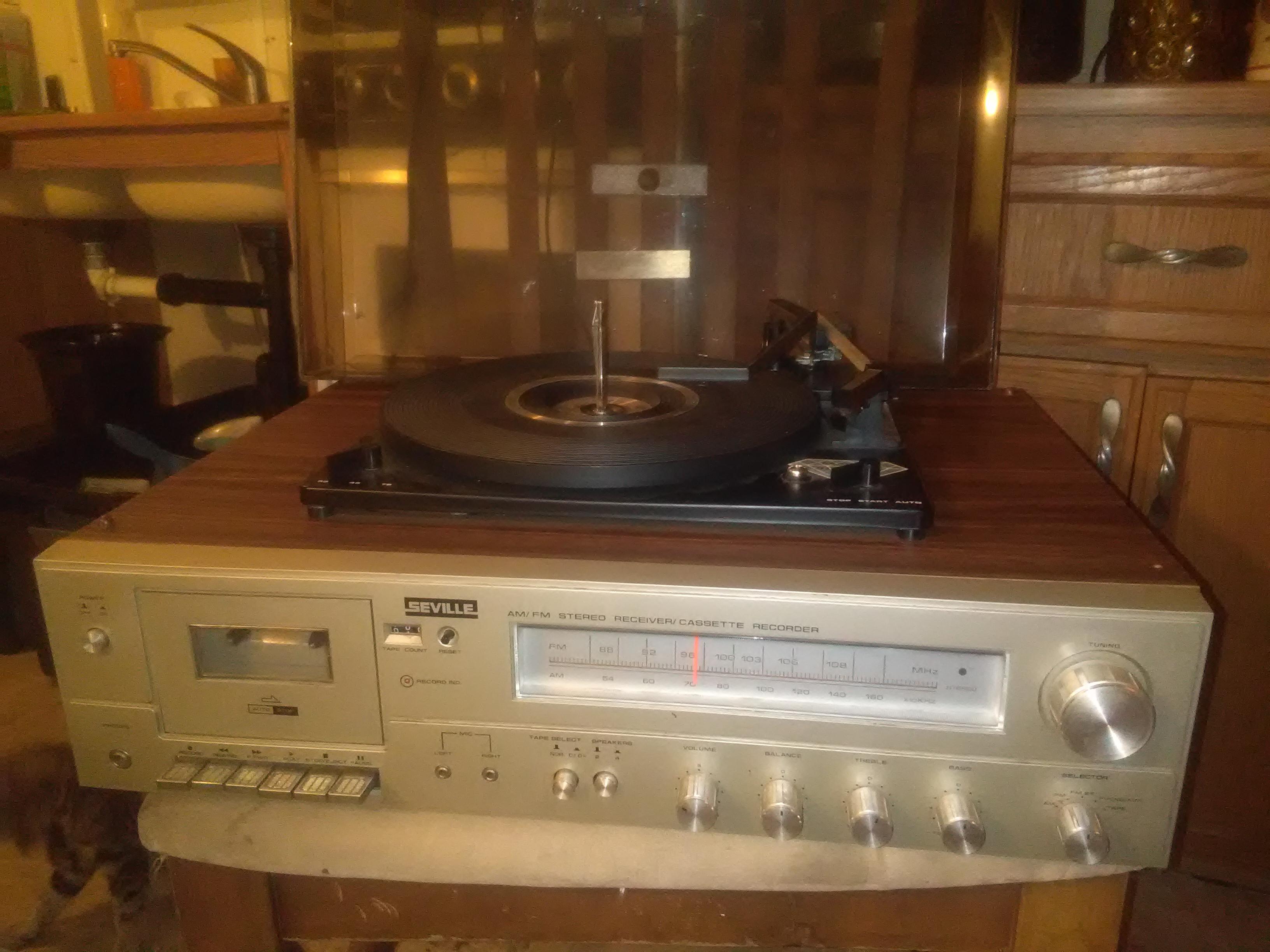 Seville stereo receiver with turntable and cassette recorder model 7702 works great