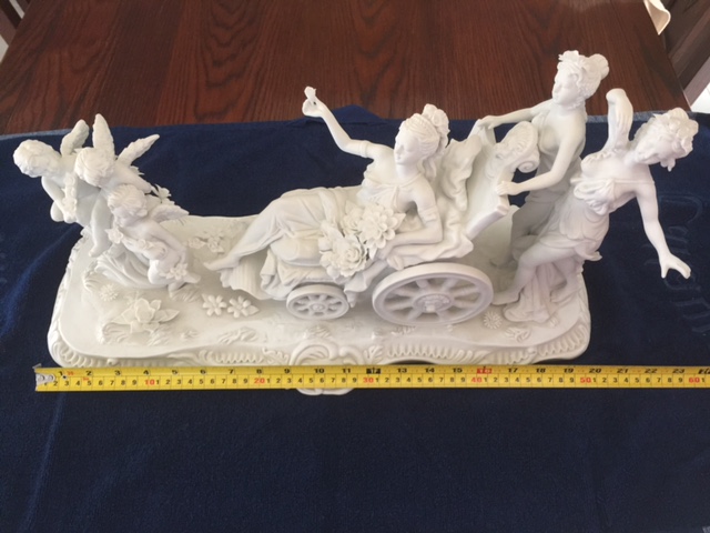 It has the Sevres marks for 1771 if it is genuine. The peice is perfect and am worried that it is too perfect for the age. I am guessing that the subject is Mary Antoinette.