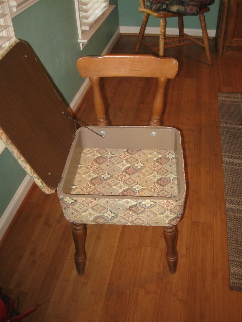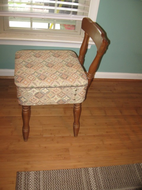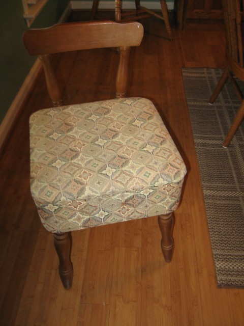 very clean, oak legs, no rips or tears, cant find any name on it or stamp