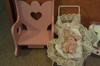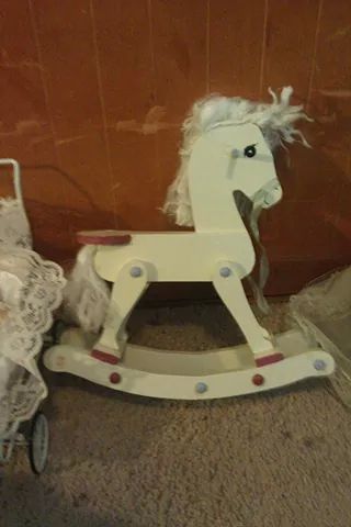 16 dolls/2 babies/ 1 stroller/ 1 rocking horse/1 musical rocking chair/1 bed