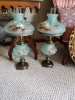 This was my grandparents dining table from Wellesley am.  It is dark wood with brass claw feet.  Has four feet in center attached to larger center post.  Has two pairs of legs that lock out at ends when extended.  Has two leaves.  Has metal plate with shaw furniture co visible when extended on top of center rail.