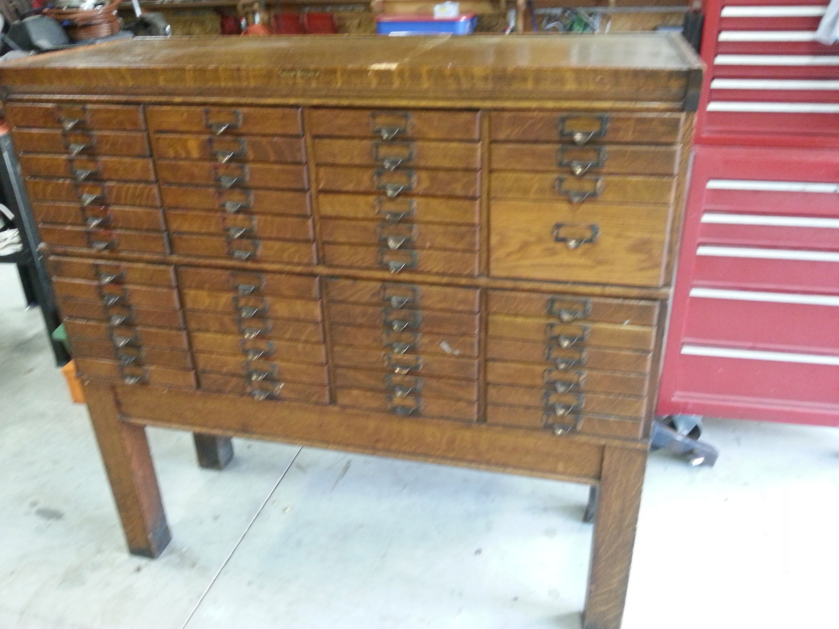 Is there a way to date this? Is there a name for this kind of article? At first I thought it might be a type-setter's case, but no way to be sure...Maybe a bank or library file cabinet..