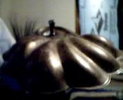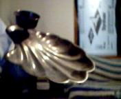 rather heavy, the cup is attached via the inch or so long stabalizing knob underneath which is threaded. item is stamped Made in USA Sheffield Silver Co. on the bottom where the knob goes thru.