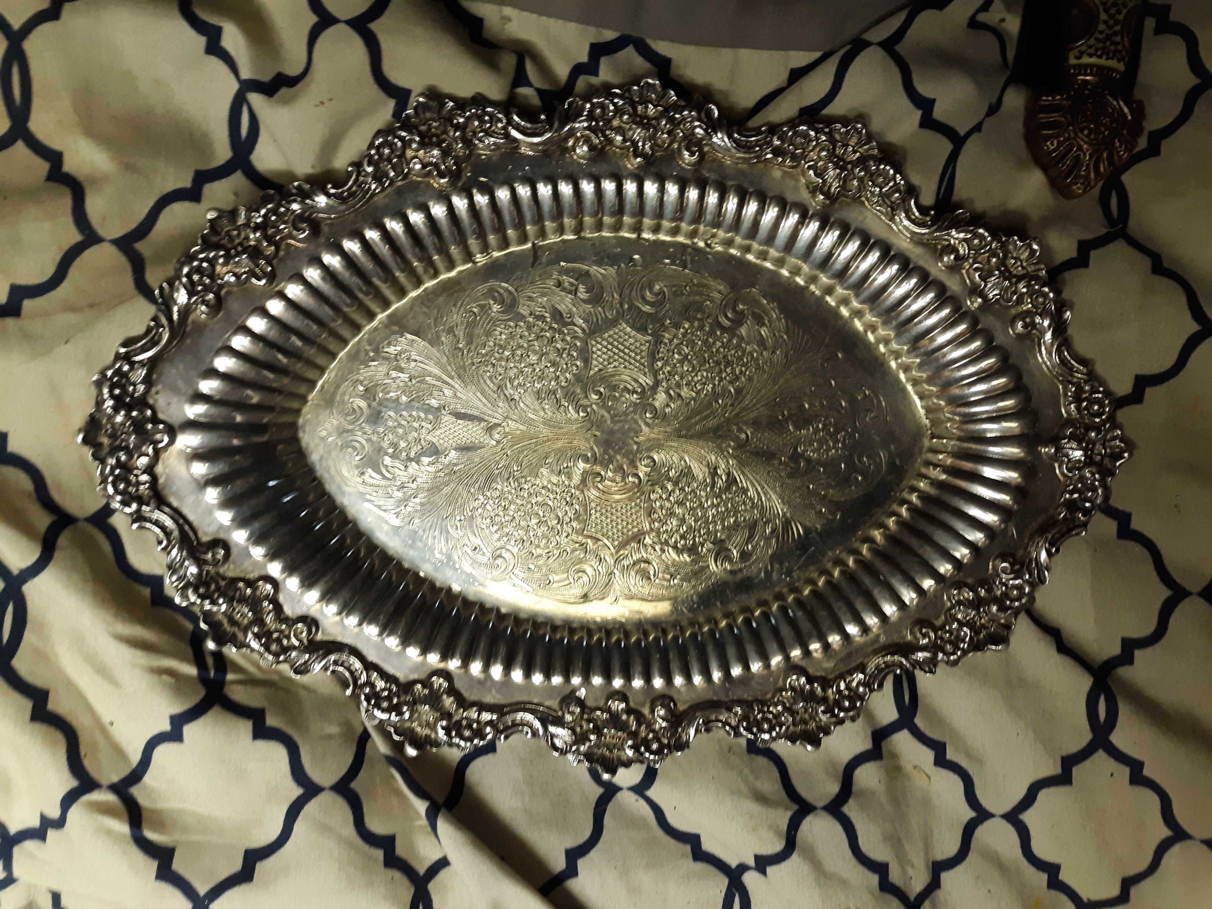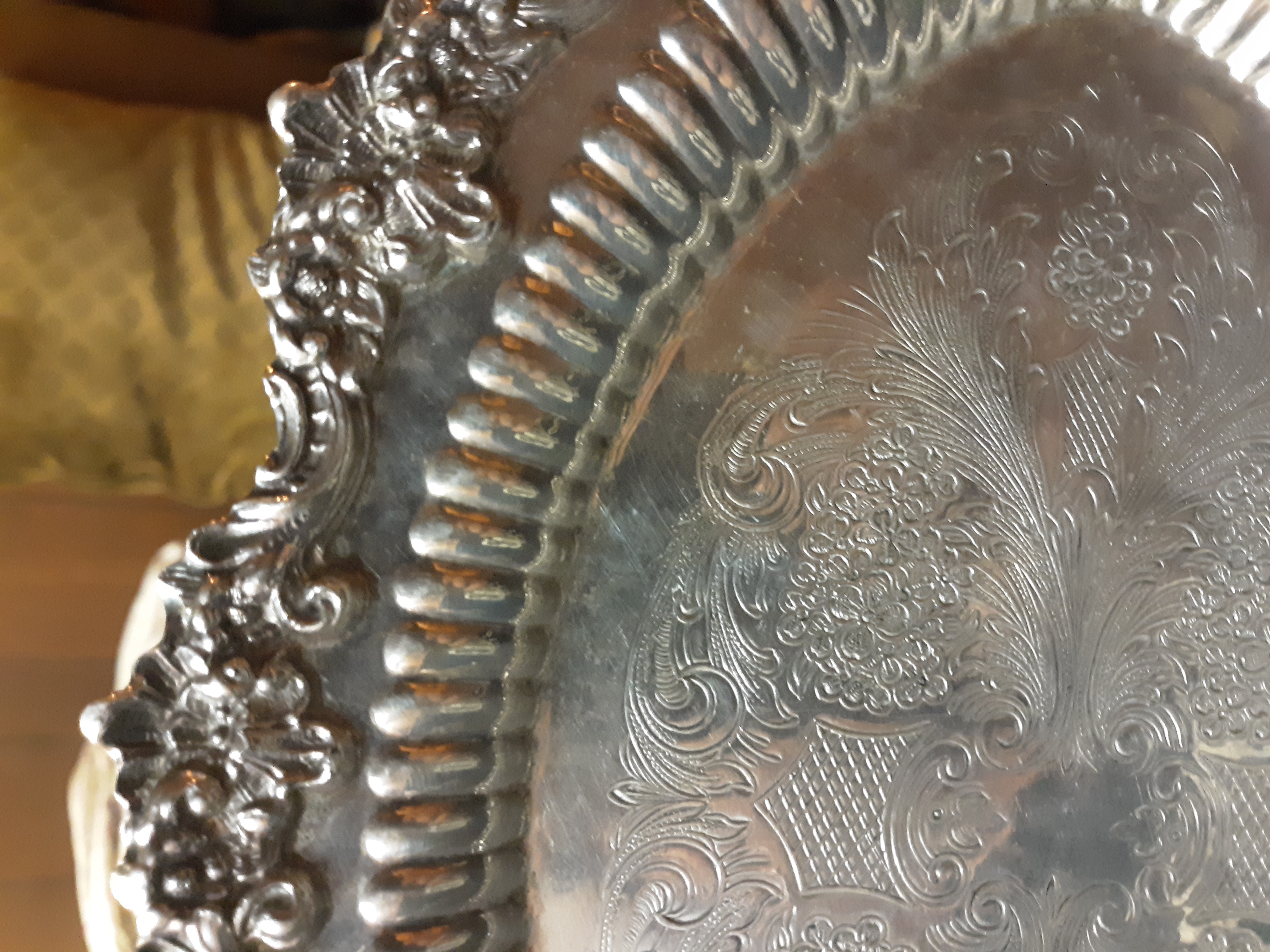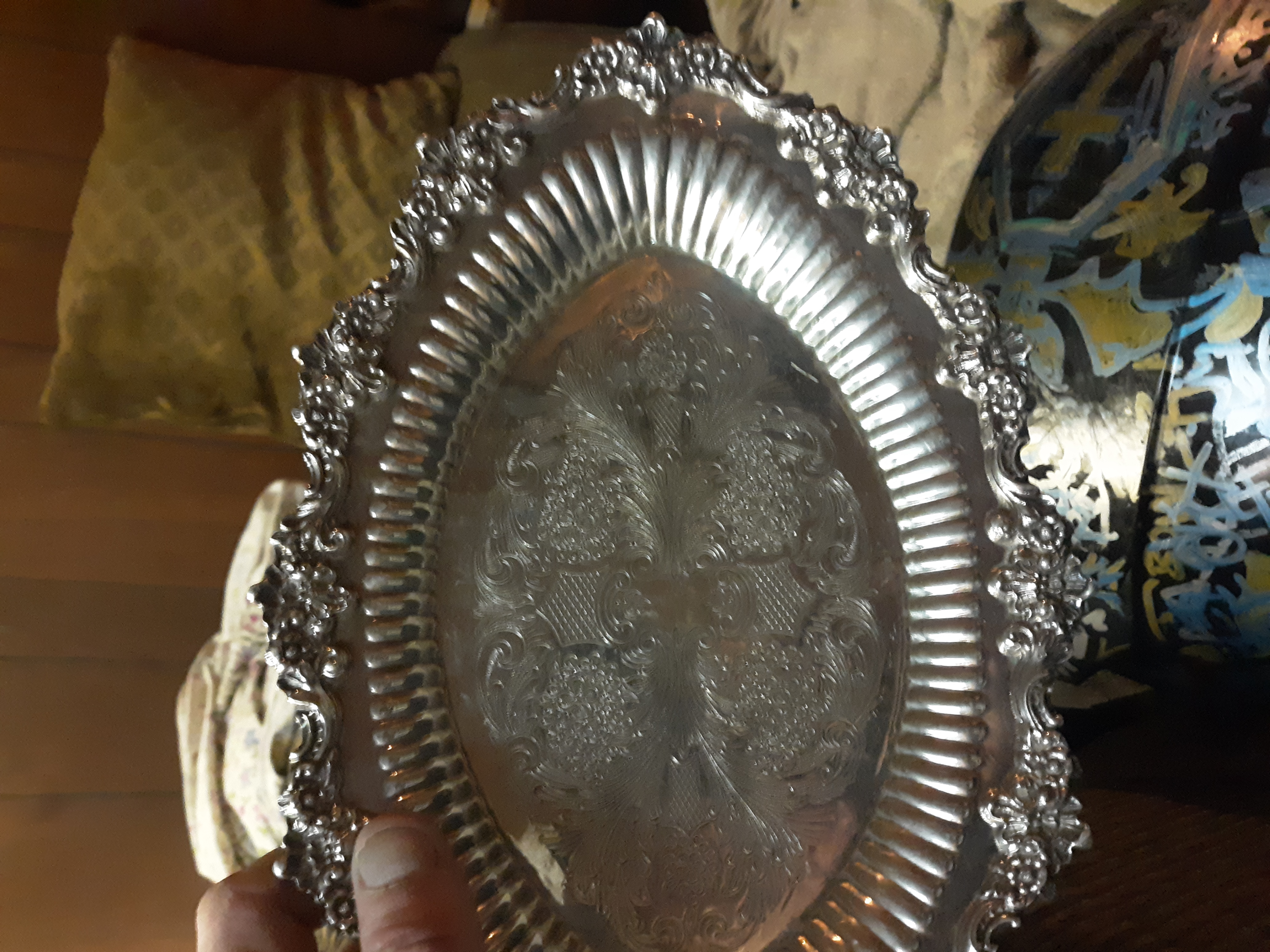 Ornate oval silver/silver plate with flowery etchings and stamp of L S with crown and shield with 2 lions. Unsure if it is pure silver or just silver plated and if its valuable or worthless. Please help!