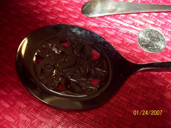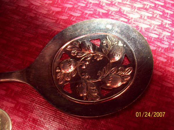 Two silver plated silver spoons, one tarnished the other mint condition. Tey have no date marks on them, ut they do say sheffield england and silverplate on thm. Te box is the original box, and it has the sheffield crown on it as well as the lion in the shield whch looks like it was through the glasgow office? They both have five holes through the spoon as part of the design, which i'm gathering is rare, but I don't know. I can't find anything quite like it anywhere i've looked, but there is so much there when you tye in seffield it's almost unblievable.