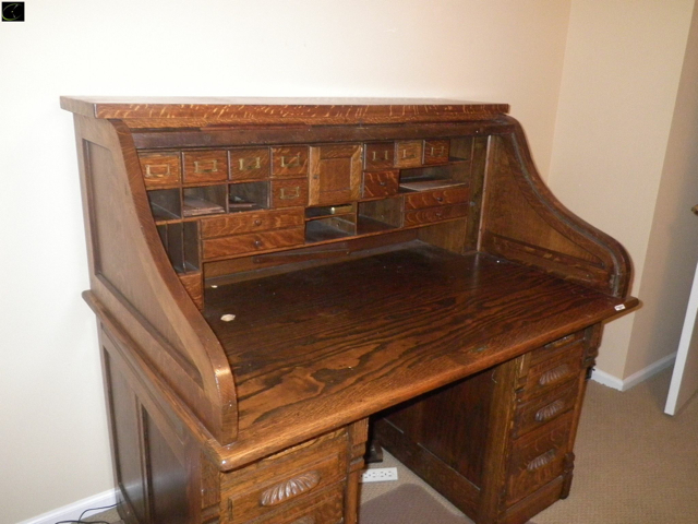 until almost the 1930's. These desks were made predominantly in oak, but examples were also made in walnut, mahogany, maple andbirch. Roll tops have always been popular in the antique market and rose dramatically in value until the late 1990's,value and demand for them since then has declined somewhat. , comparable ones now sell at auction in the $400.00- $800.00 range.
