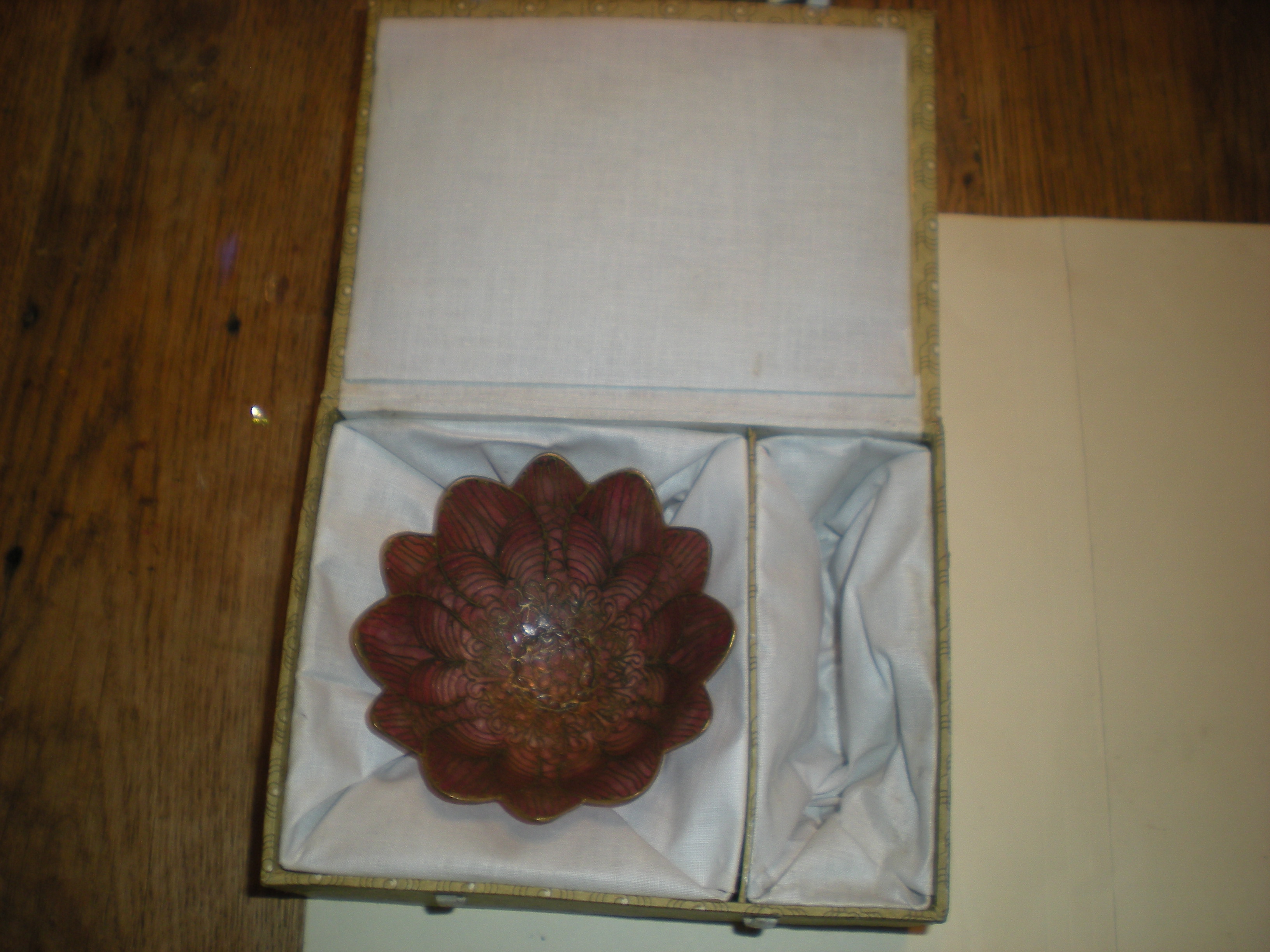 This is a beautiful "thing". I do not know what - a rose shell in a box. Intricate laces metal design. See pictures. I am interested to see if it is recognized for what it is and where/when it came from to learn more about it.