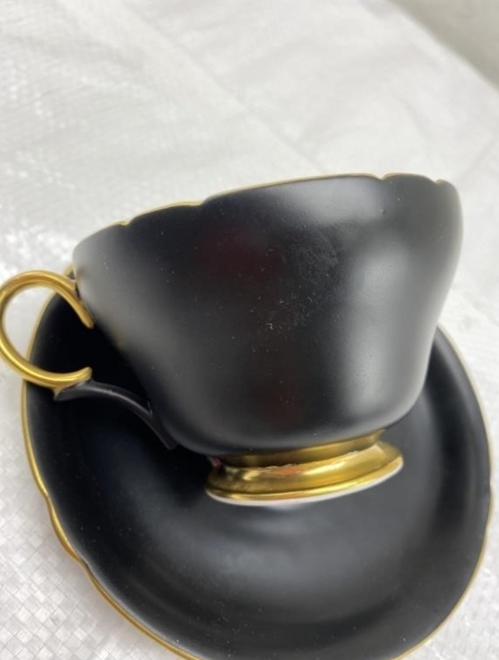 Shelley, a renowned English pottery manufacturer, was established in the late 19th century and became famous for its fine bone china. The company was known for its delicate and colorful designs, particularly floral patterns, which were highly sought after during the Art Deco period. The use of vibrant colors and intricate floral designs in this tea cup and saucer exemplifies the craftsmanship of the era.