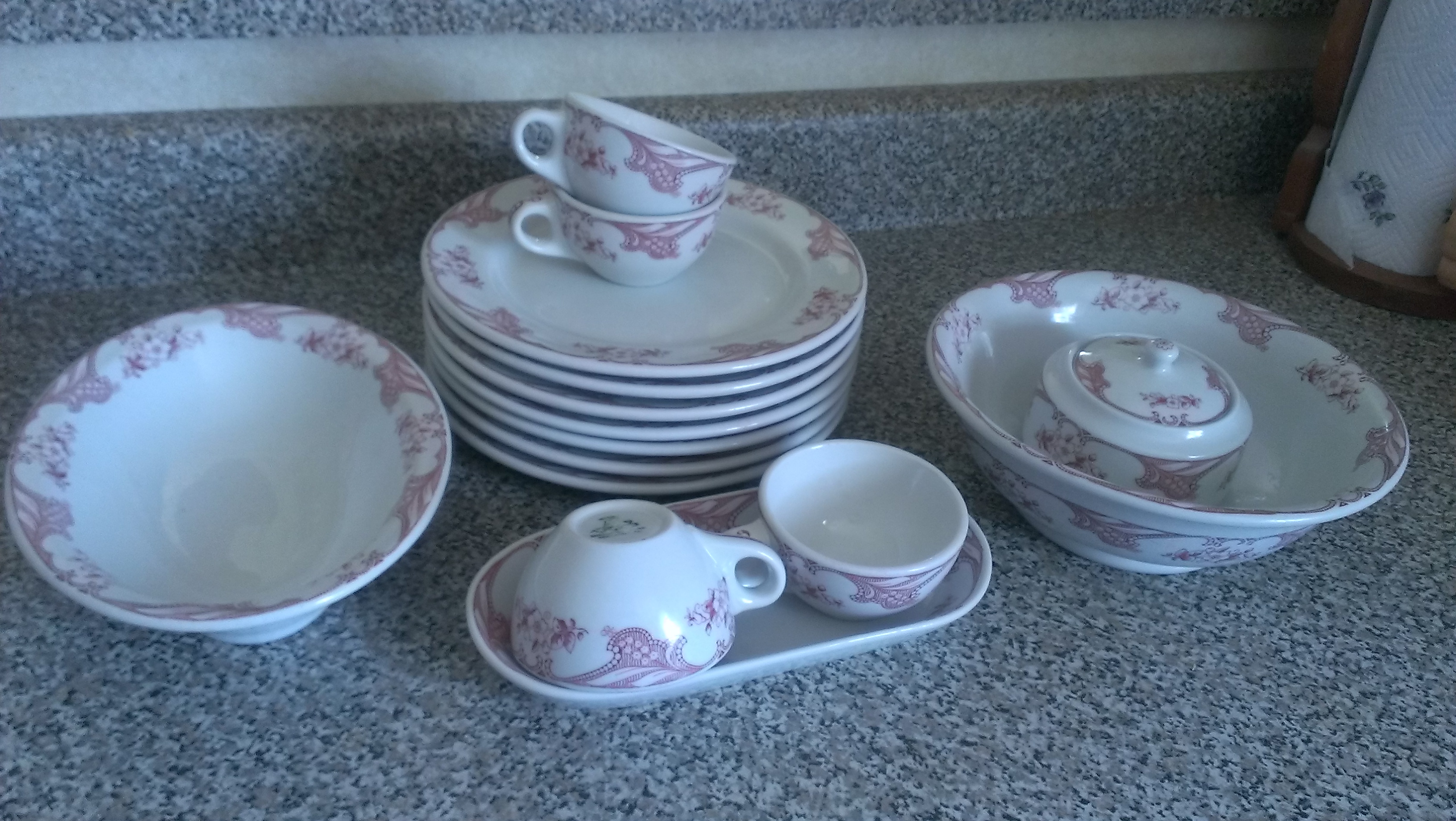 Please help me put a value $ on this set. Or is the value only sentimental ? 7 plates 4cups 1(sugar) bowl w/lid 1 large round bowl 1 oval bowl 1 (butter) oblong bowl or dish ... Rose point pattern ..green printed Indian on bottom of each dish with Shenango China Newcastle PA. On some it also has 0-10 or D-11 . No chips or breaks on any of the pieces.