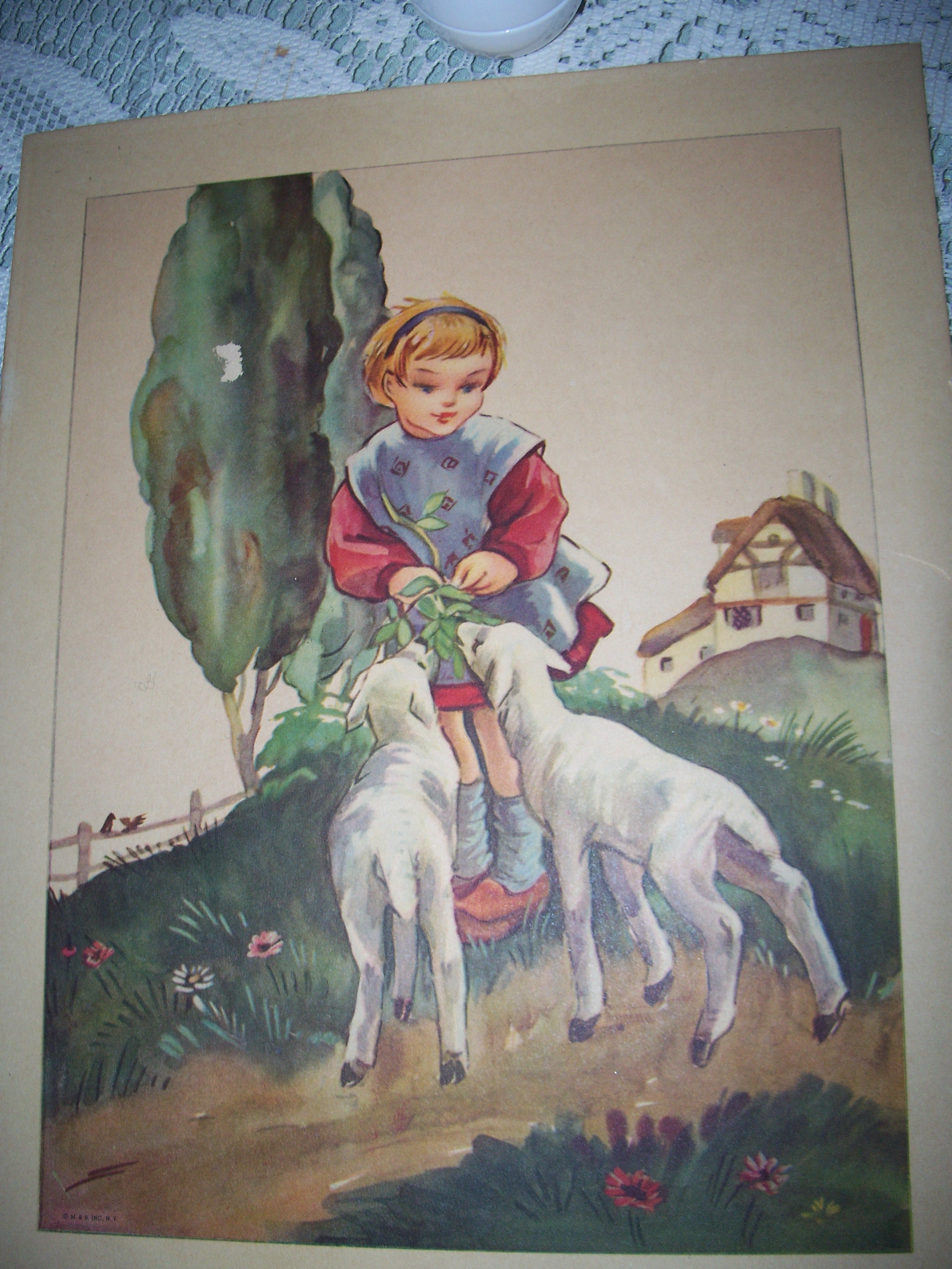 small "tape lift" on tree. Smail tear on mat Otherwise nice color and interest.