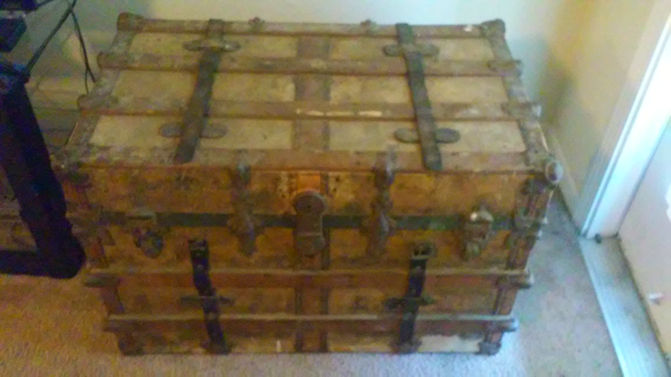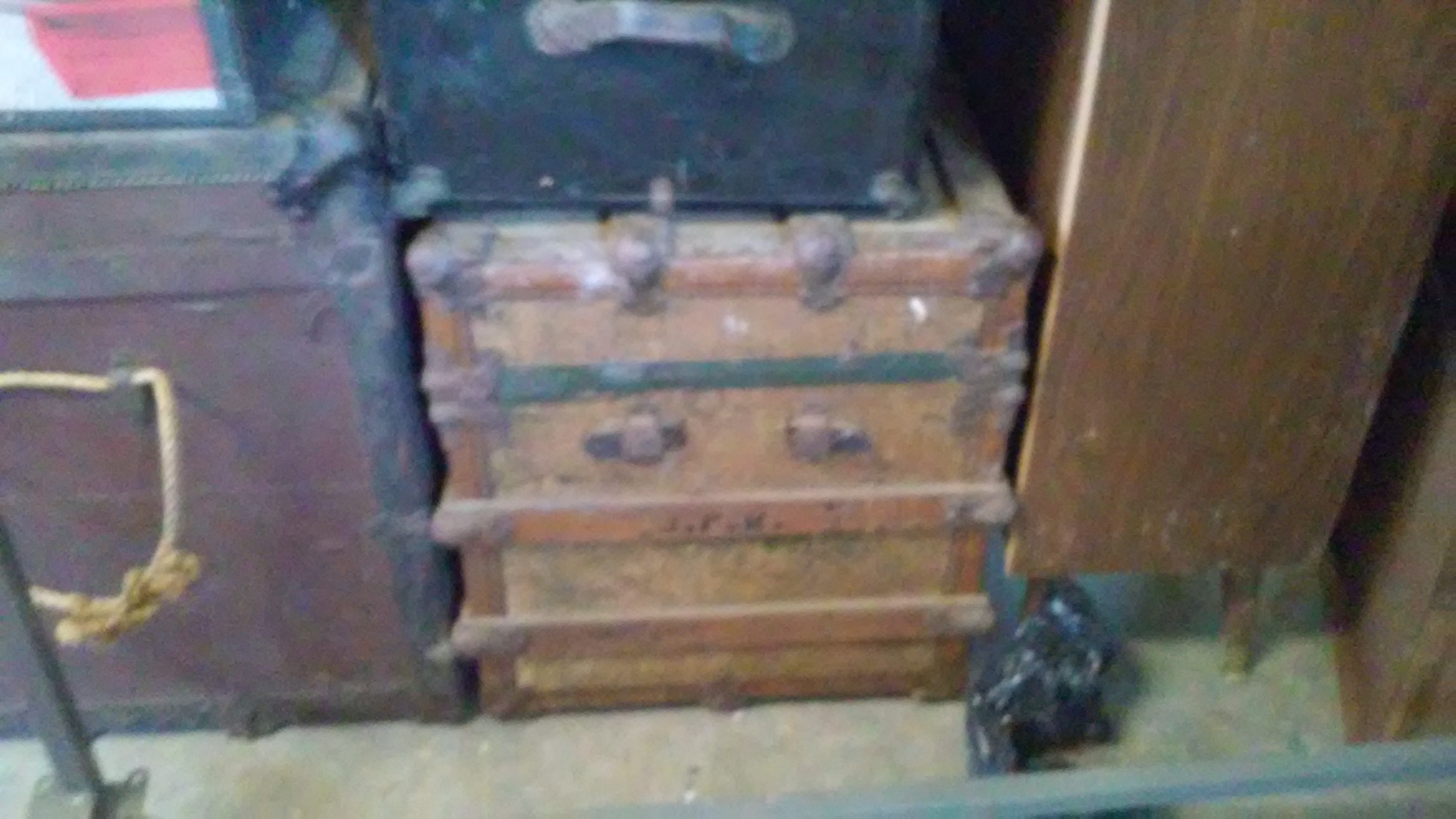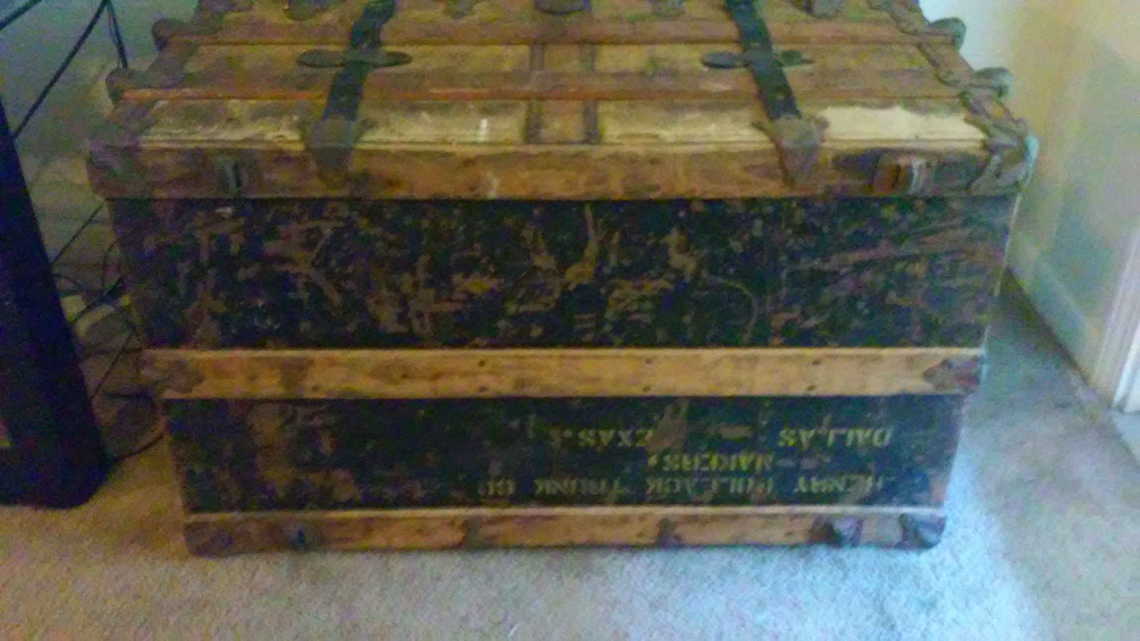 Henry Pollack trunk inside is mint condition. It is 22 inches high and 32 inches long. It has wheels on the bottom of the trunk because it is from a ship. top lock is missing. It has the initials of JFK on both sides.