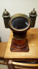 has a dent in the ring of the front lens and is missing the front hood screw. other than that, it has all lenses/glass and both lighting houses. rest of body (outside of the front viewing ring dent) is good with no dents. could use a good cleaning (???).
