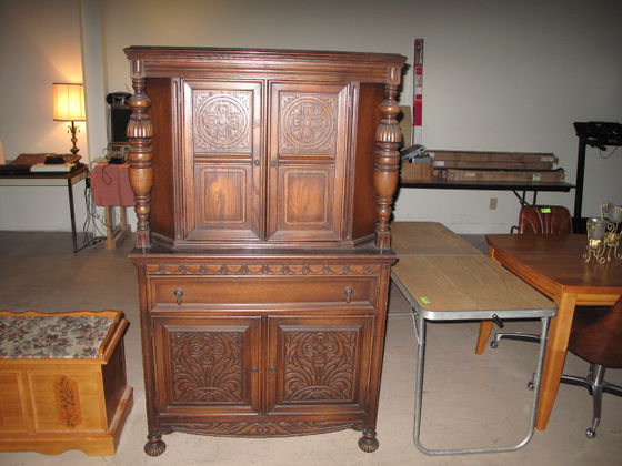 I recently acquired an oak cabinet made by Showers Brothers in Bloomington, IN. The item number imprinted on the back is 2093-CC, with a shipping label to Logansport, IN.