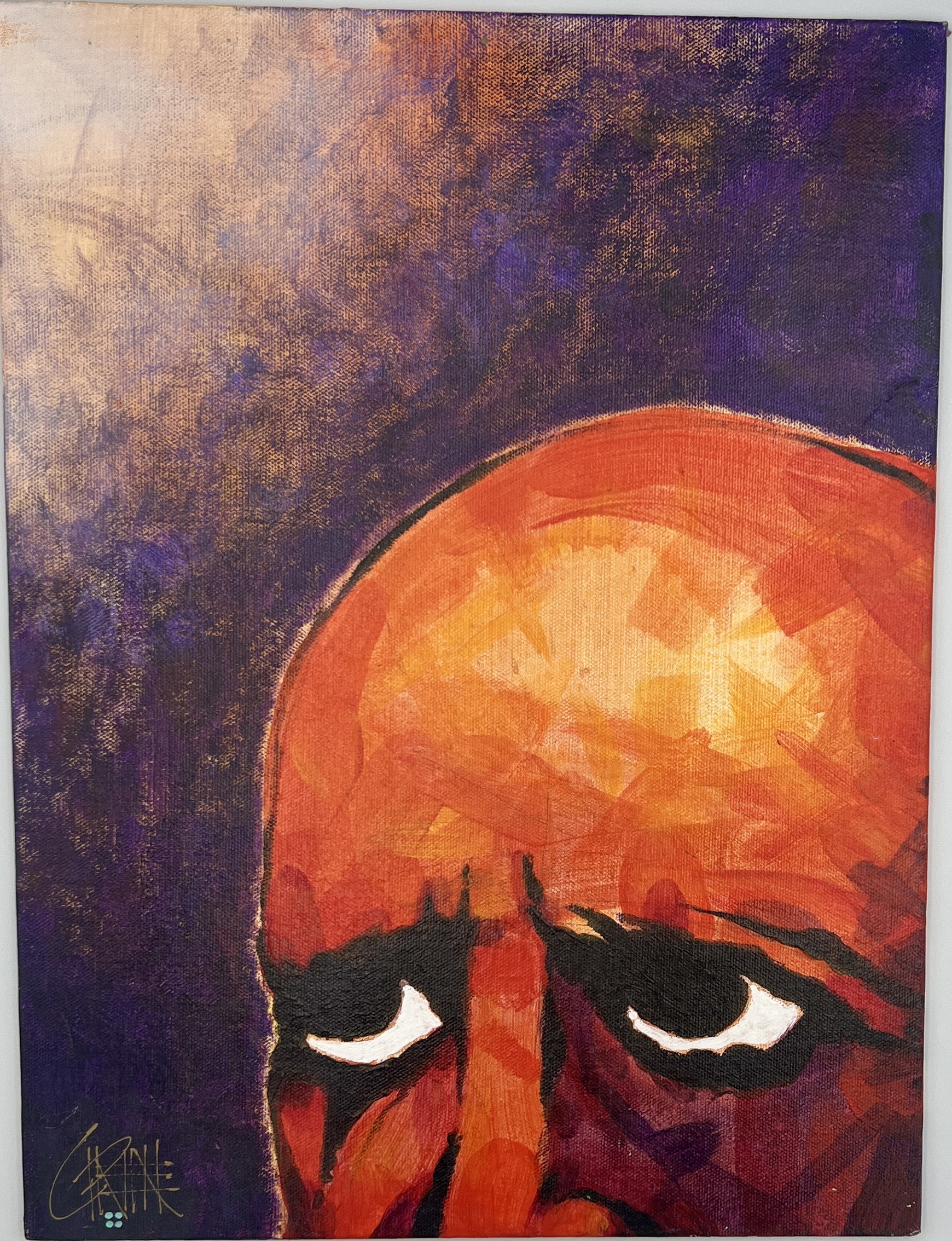 The artist's identity is not specified, but the abstract style suggests influences from contemporary art movements that emphasize emotional expression and bold color usage. The use of vibrant colors like orange, black, and purple reflects a trend in modern abstract art that seeks to evoke strong emotions.