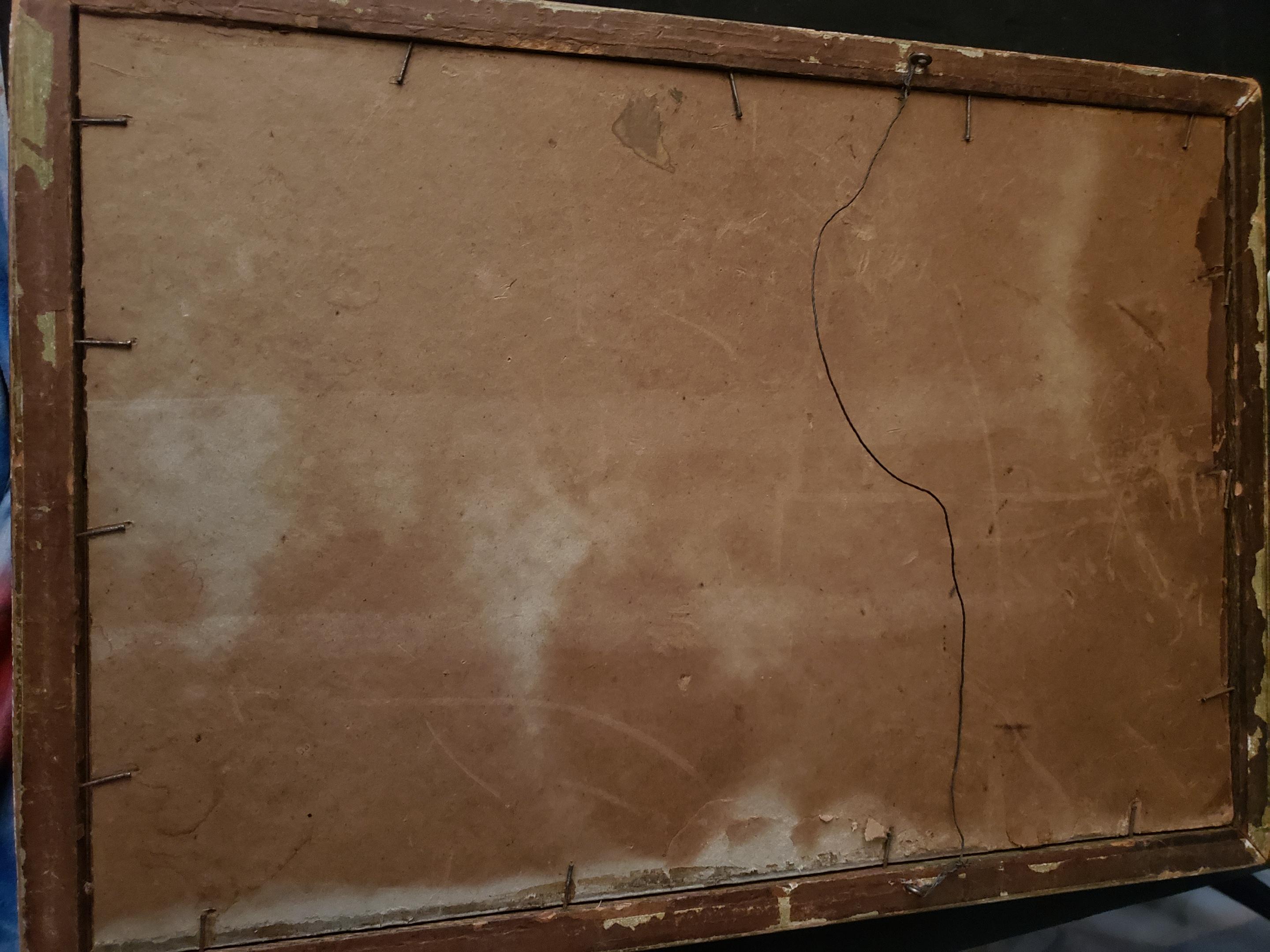 It has a signature on the bottom that is hard to make out. It's framed, probably in original frame (glass cracked).