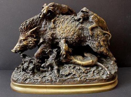 Signed bronze boar