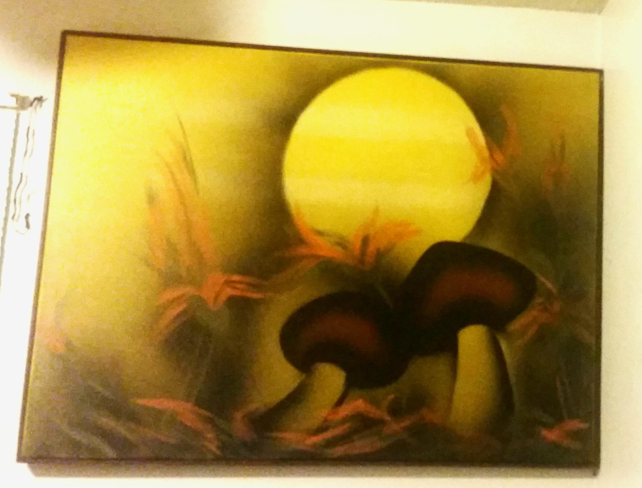 Painting of Mushrooms under the moonlight signed Carlo in the bottom right corner. Measures 48" x 36" x 2"