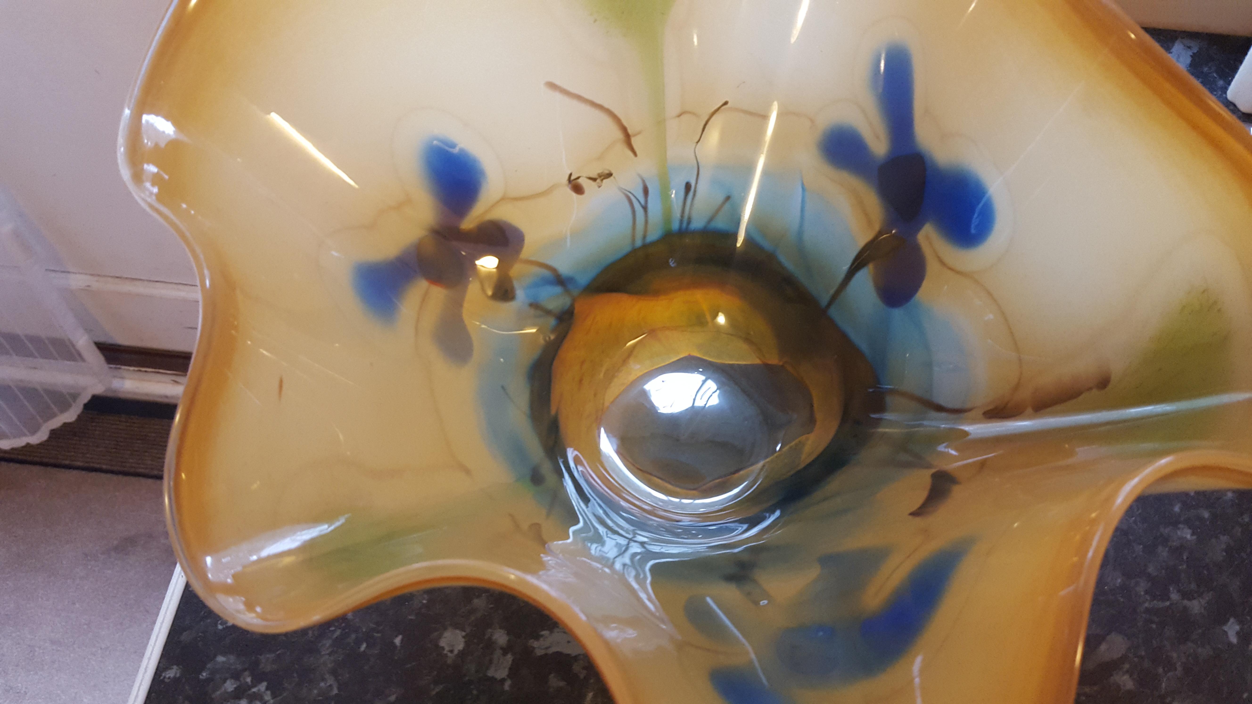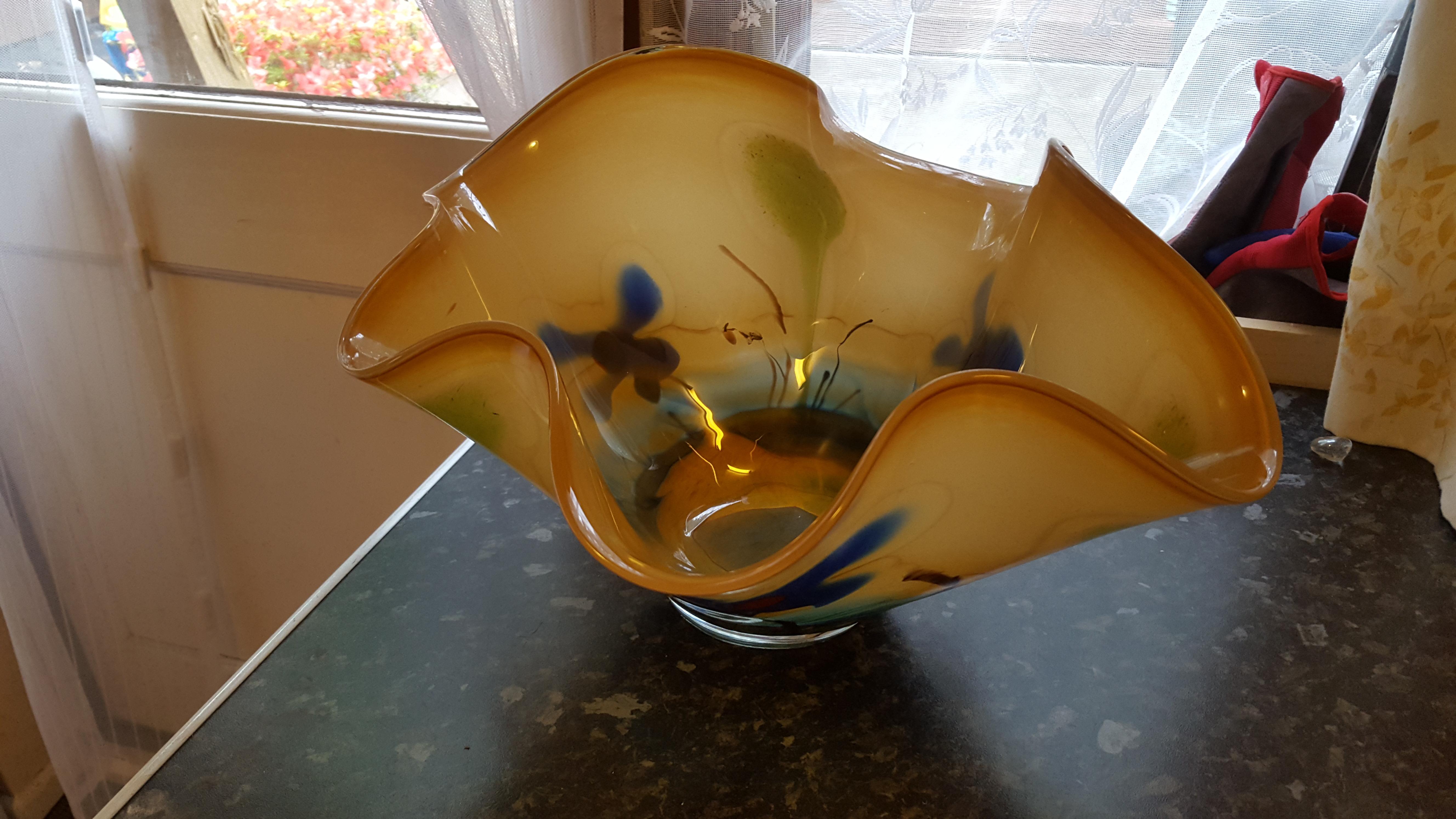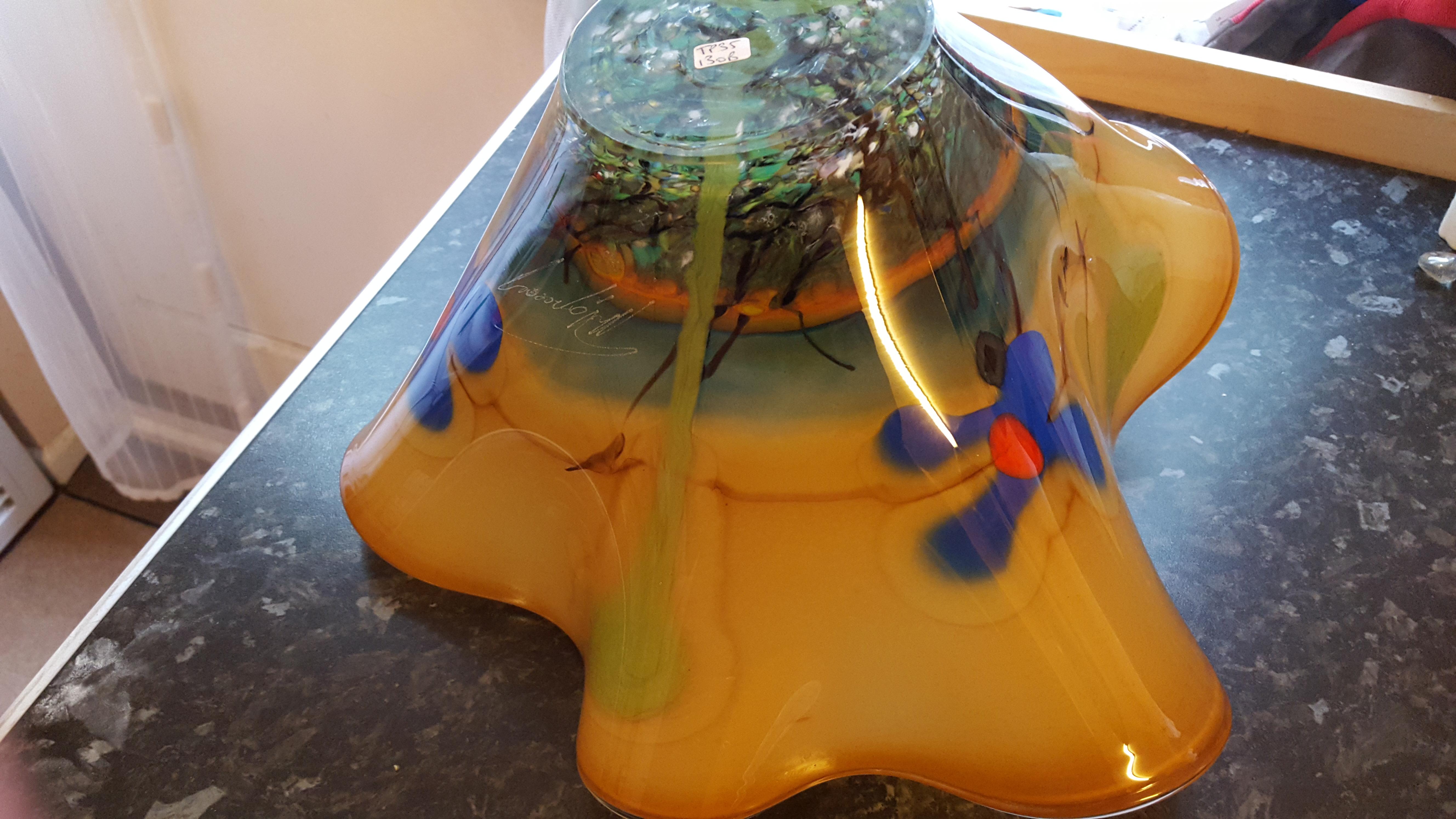 The bowl is very heavy 3.435kg or 7.5lbs in weight, distance across the top at the widest points are 37.5cm x 34cm and its 22cm high.