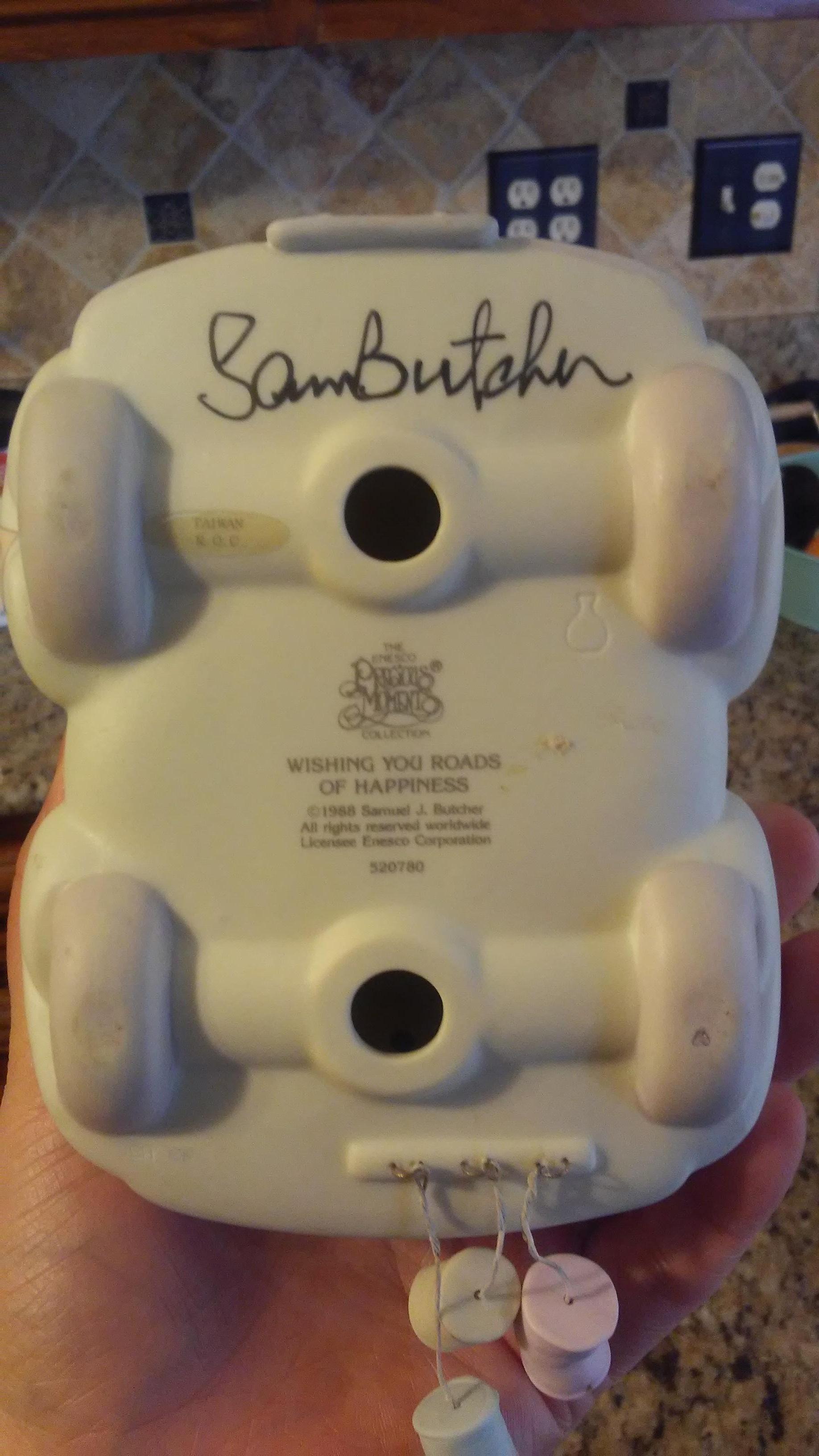 Signed by Sam Butcher 1991 precious moments "Wishing You Roads of Happiness" figure