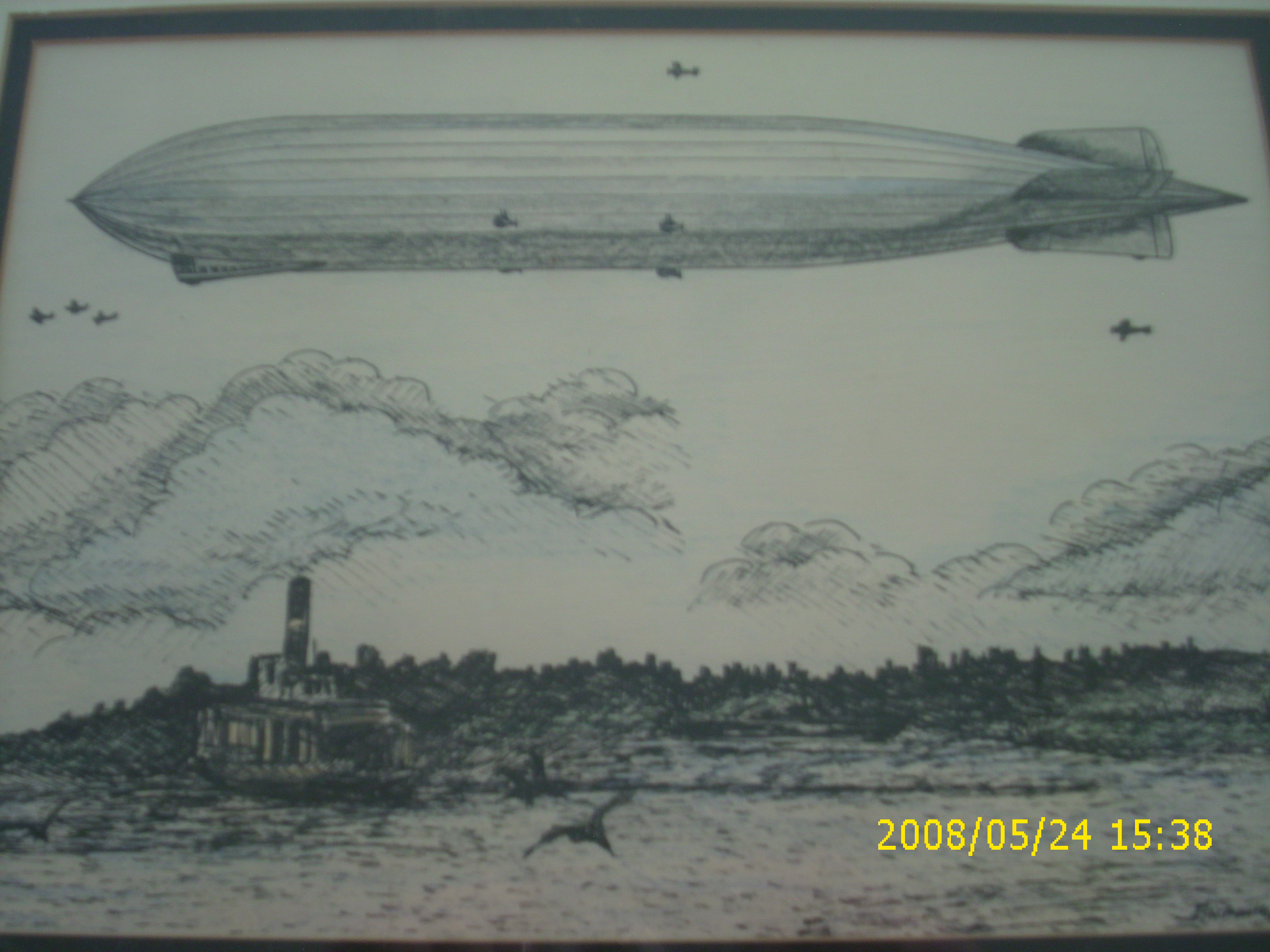 Re: Signed,Pen Artwork of what looks to be the Hindenberg