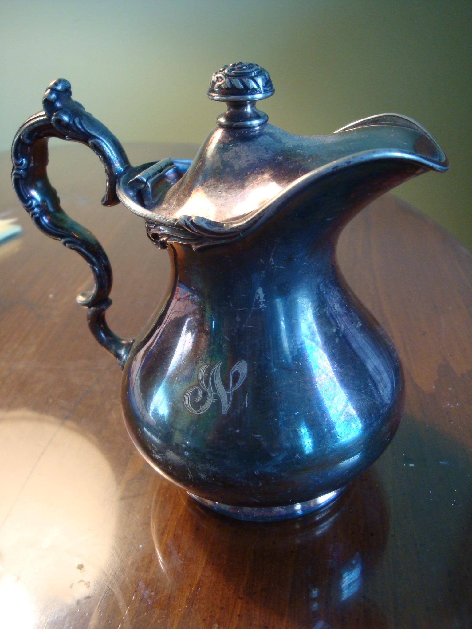 looks like a creamer of sugar bowl? silver with the markings quadruple 25