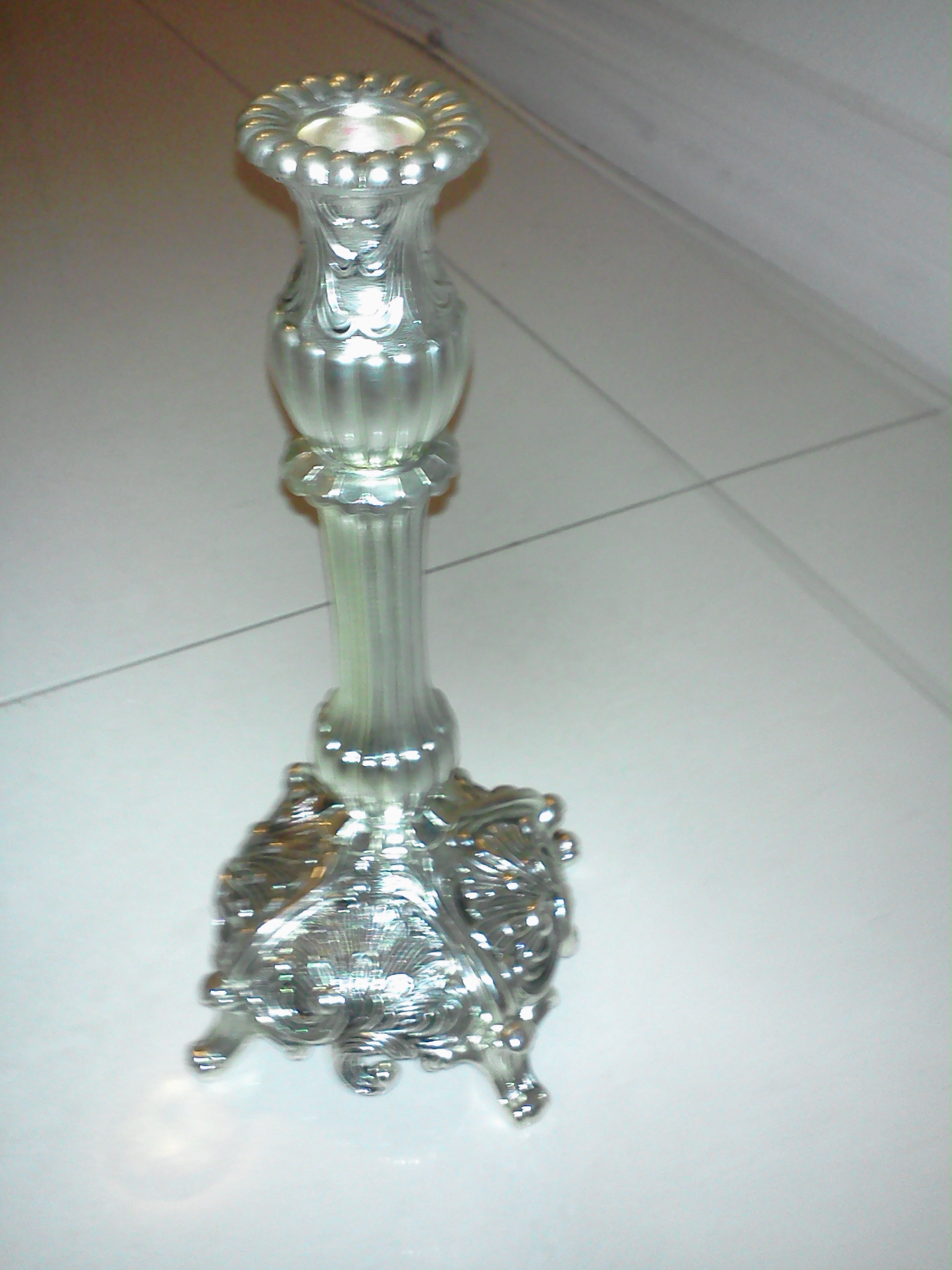 Two heavy and very ornate candlesticks. no marking visable.