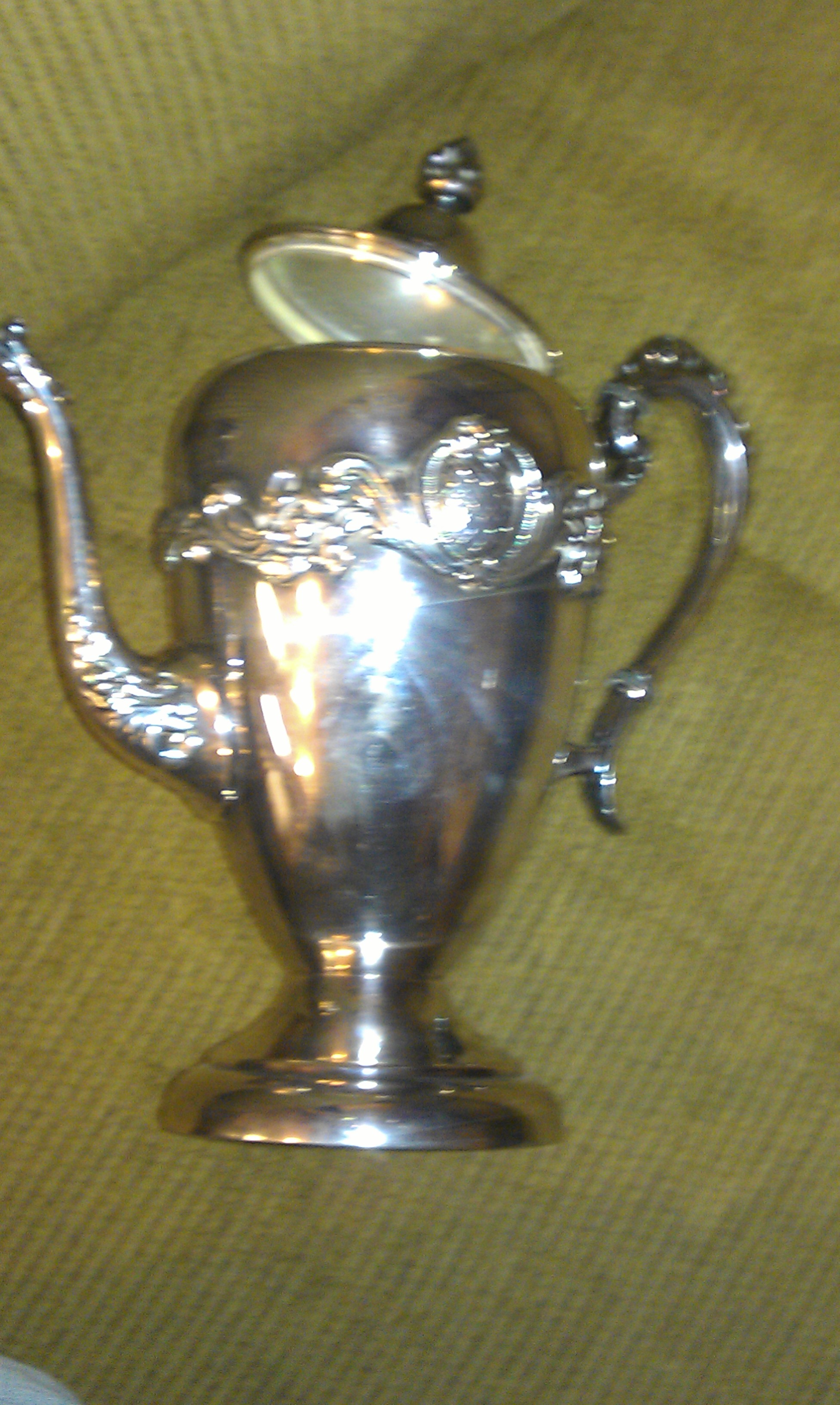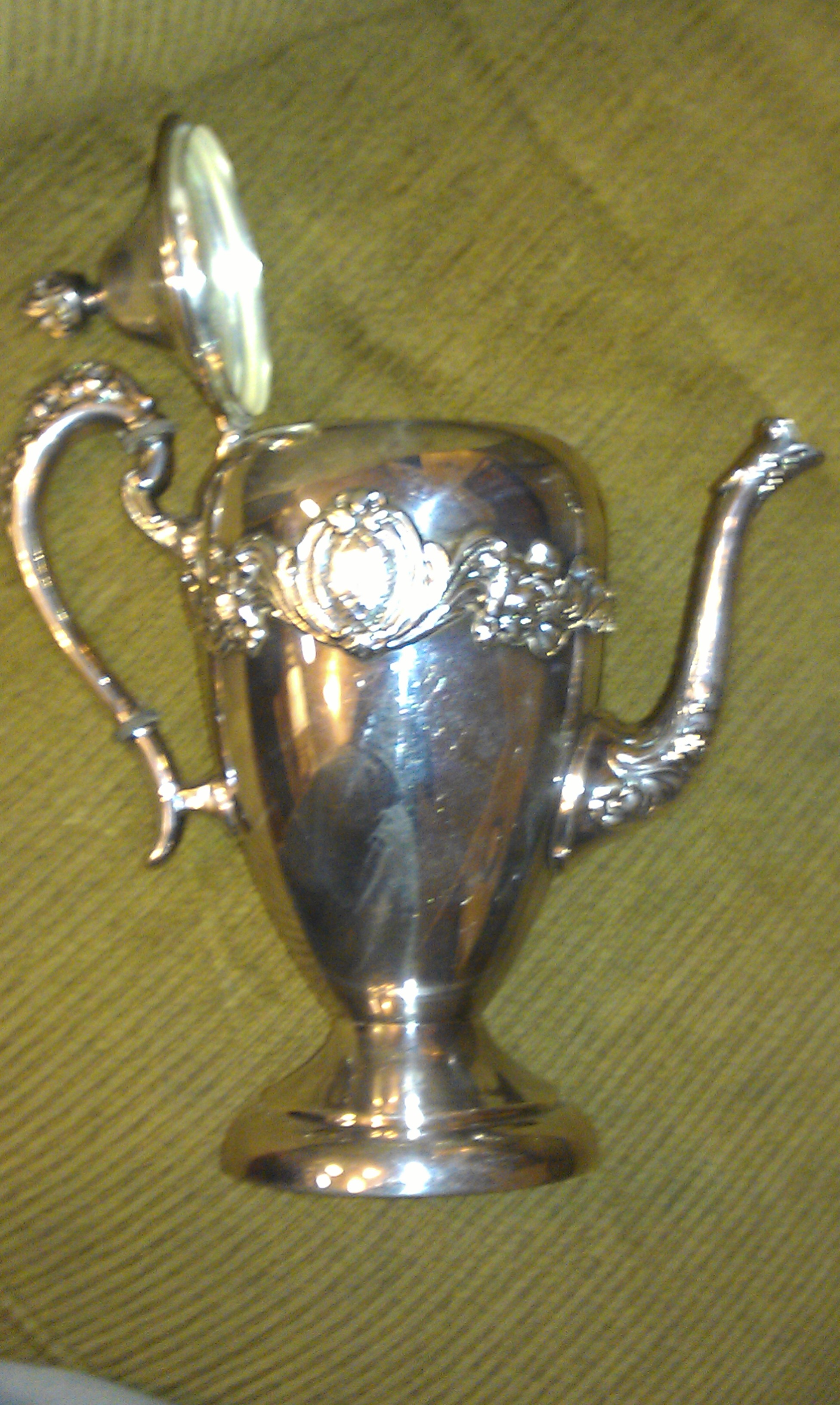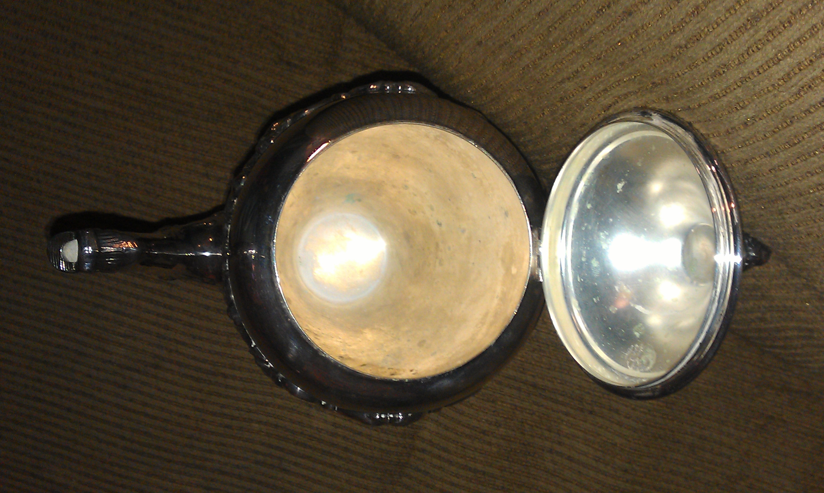 Silver on Copper tea pot. No dents or dings. Nothing is broken.