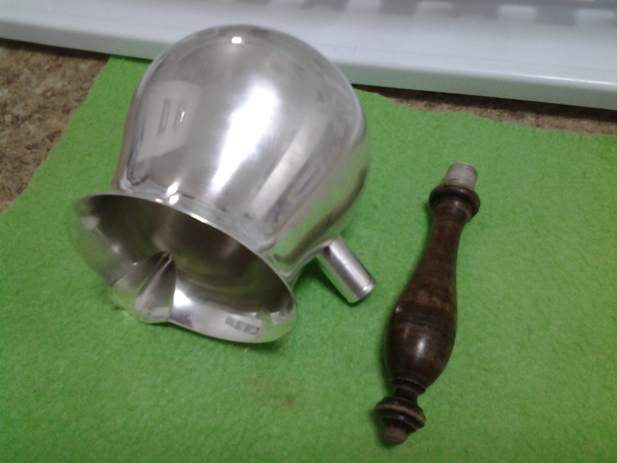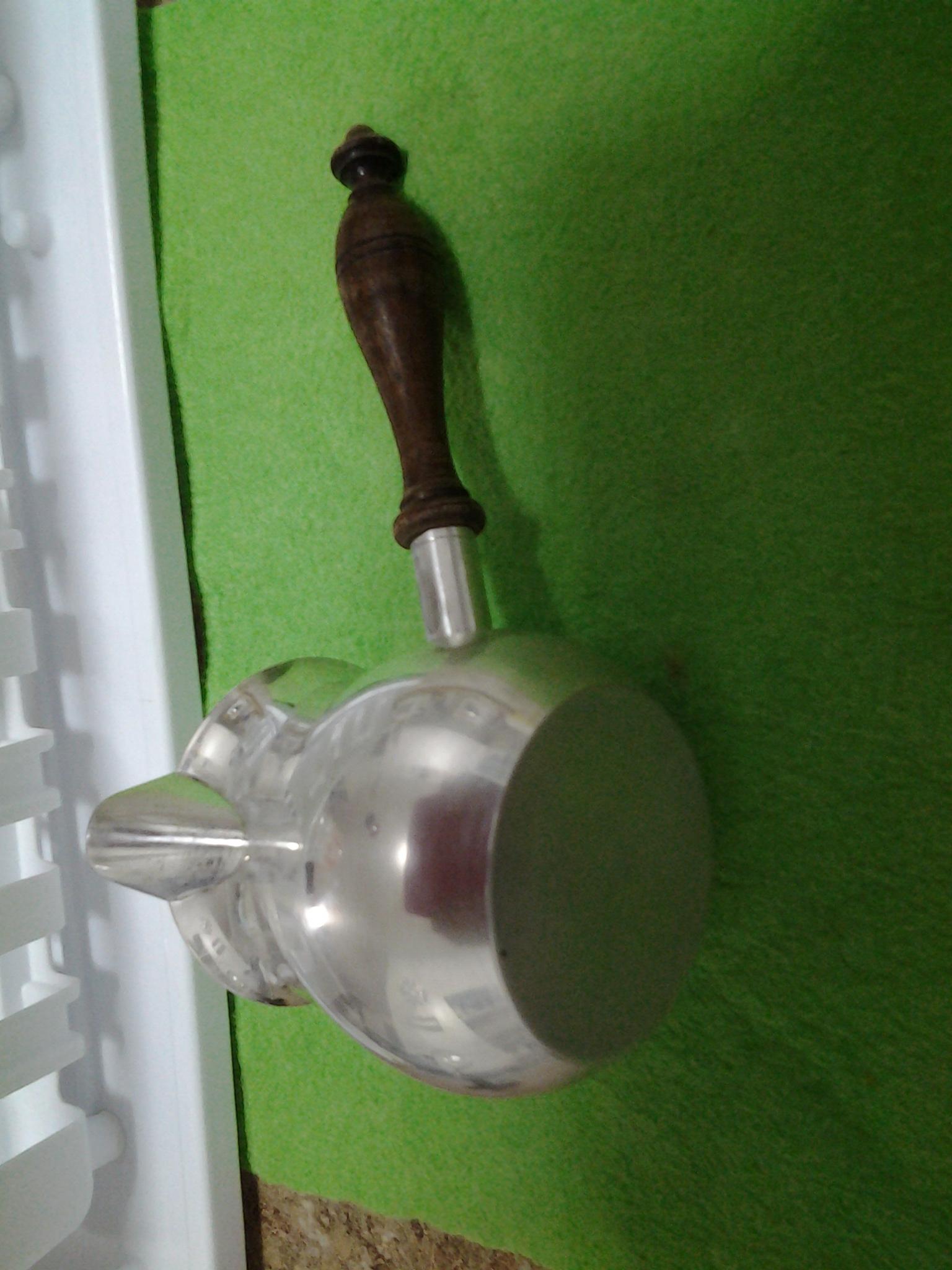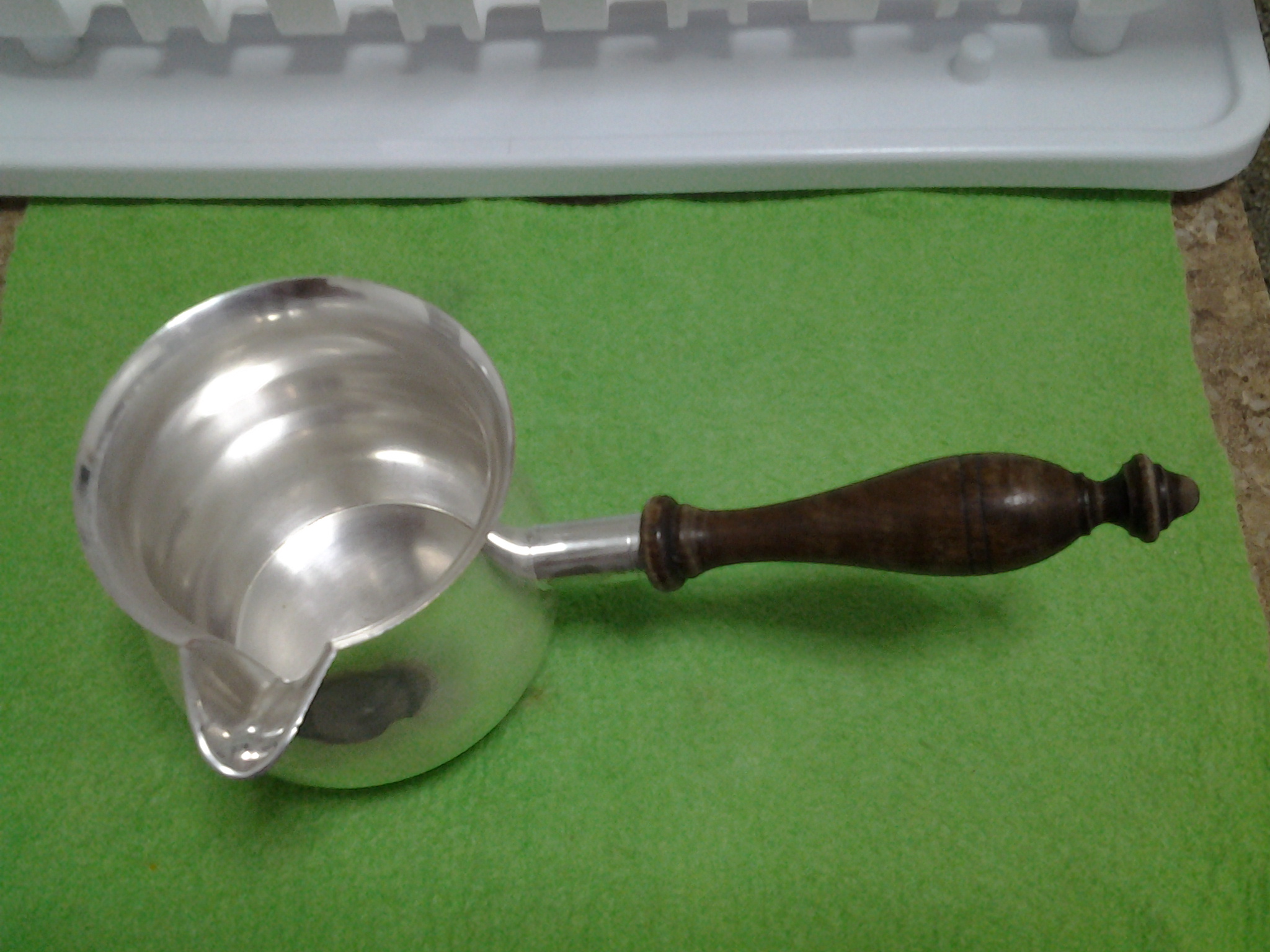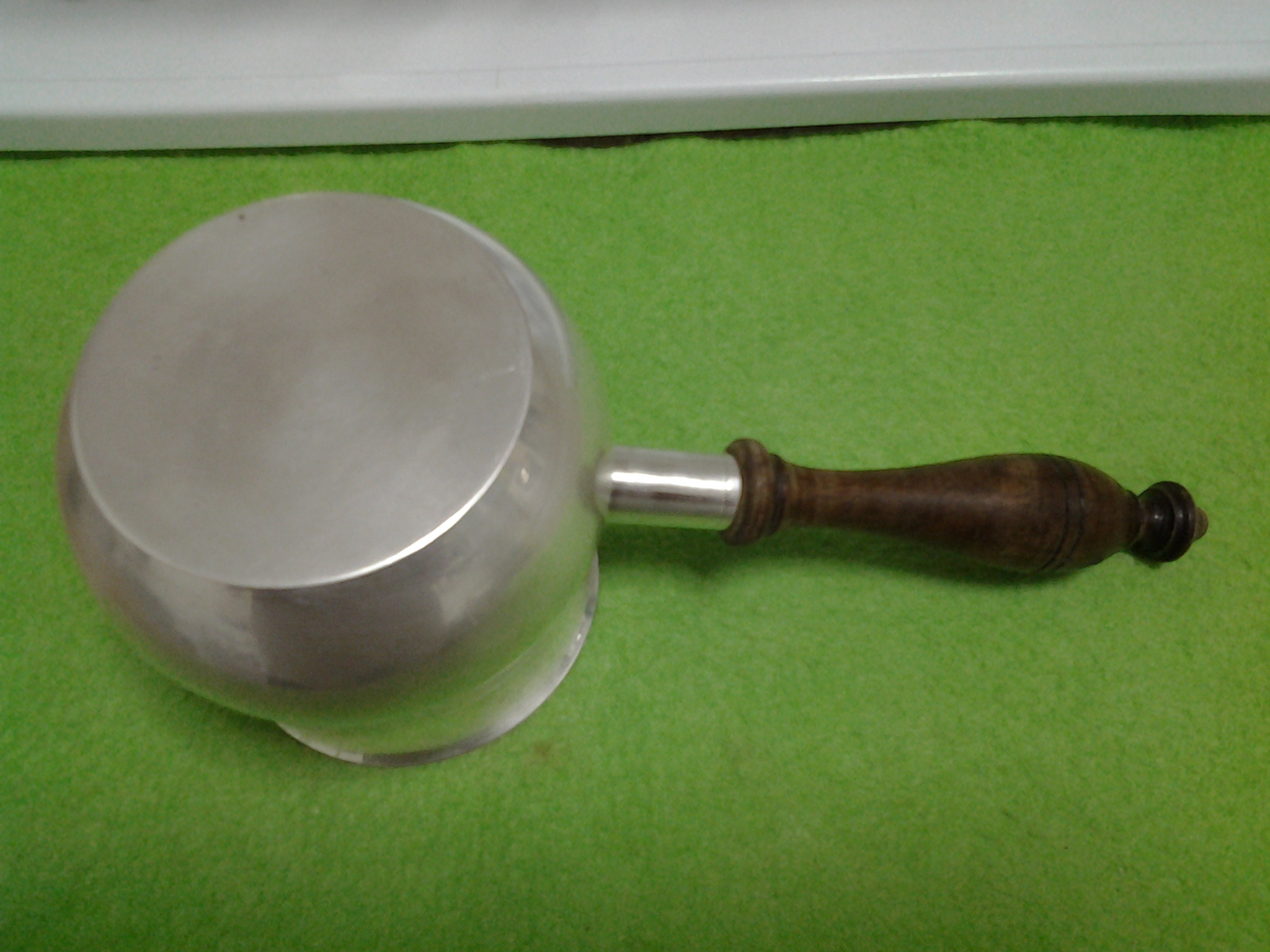Silver Creamer with wooden handle purchased in a 20 year old antique shop in Georgia during our vacation there.