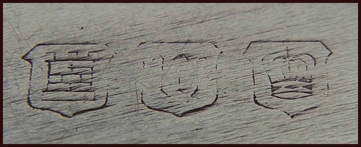3) Is it Sterling Silver or Plated? I began to clean it, convinced it was Plated because what looked like a brass tone metal srrounded by Silver was present, close to the underside of the handle. I thought that was evidence of an acid test for silver. The brass tone spot dissapeared with some hand polishing. There are tiny black spec like stains (oone one the inside bottom, one outside) that my simple hand cleaning did nof get rid of.