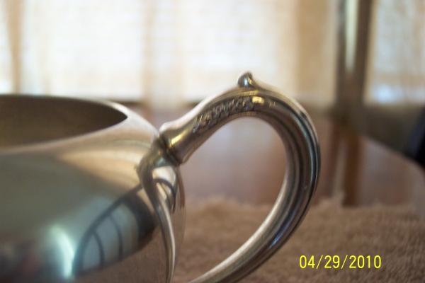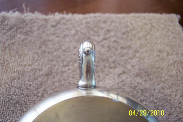 During an eviction I foound this. I decided to bring it home. I have had it for 5 years. A month ago I noticed something on it. When I looked further past the tarnish I saw that it had some interesting marks on it so I bought some cleaner and found this under the tarnish. It has not been fully cleaned yet.